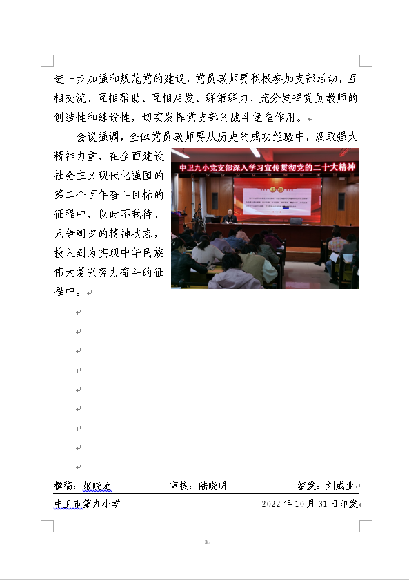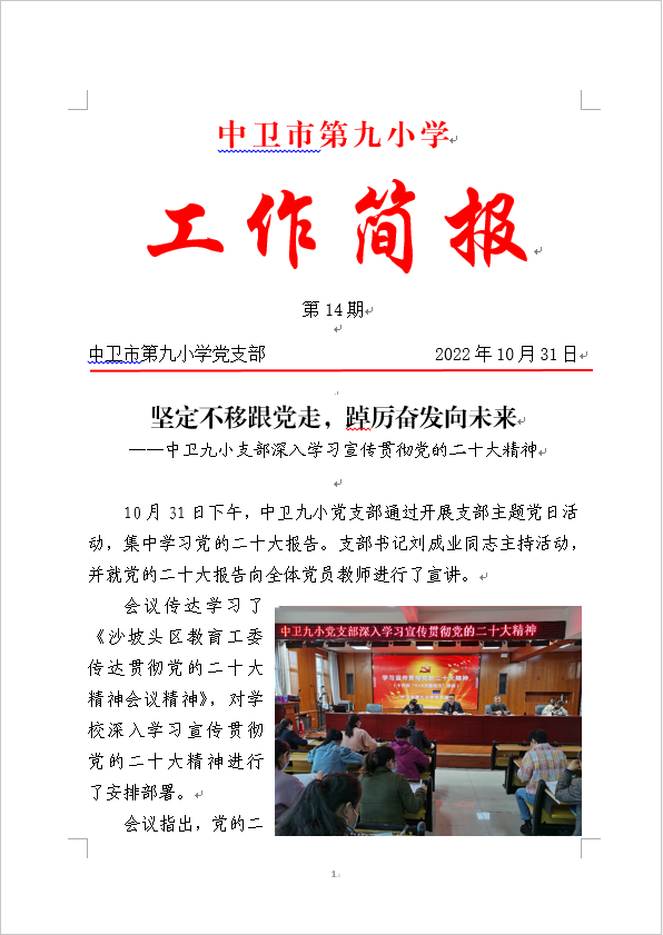 发布时间:2022-11-01 14:22 栏目:党建动态 发布单位:中卫市第九小学 点击量:2548 【公开】