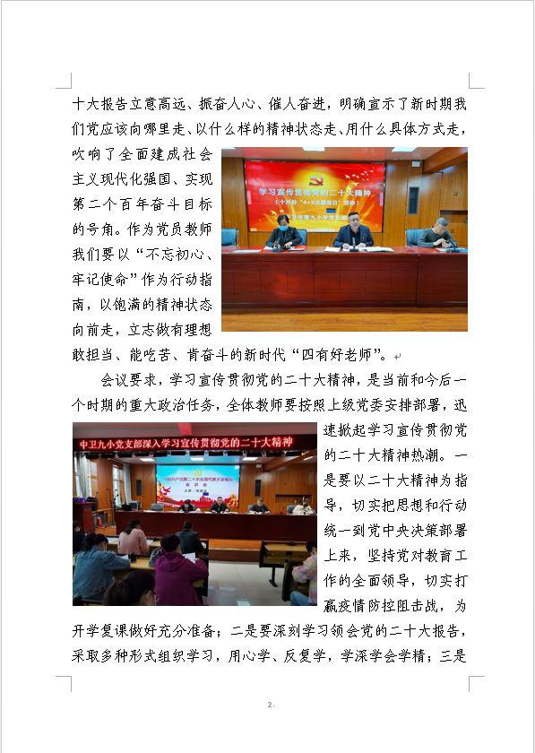 中卫九小支部深入学习宣传贯彻党的二十大精神