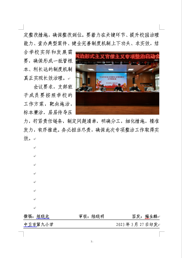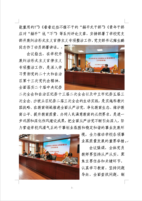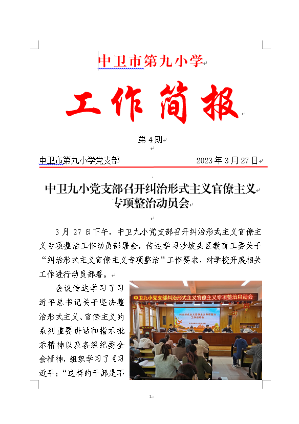 中卫九小党支部召开纠治形式主义官僚主义专项整治动员会