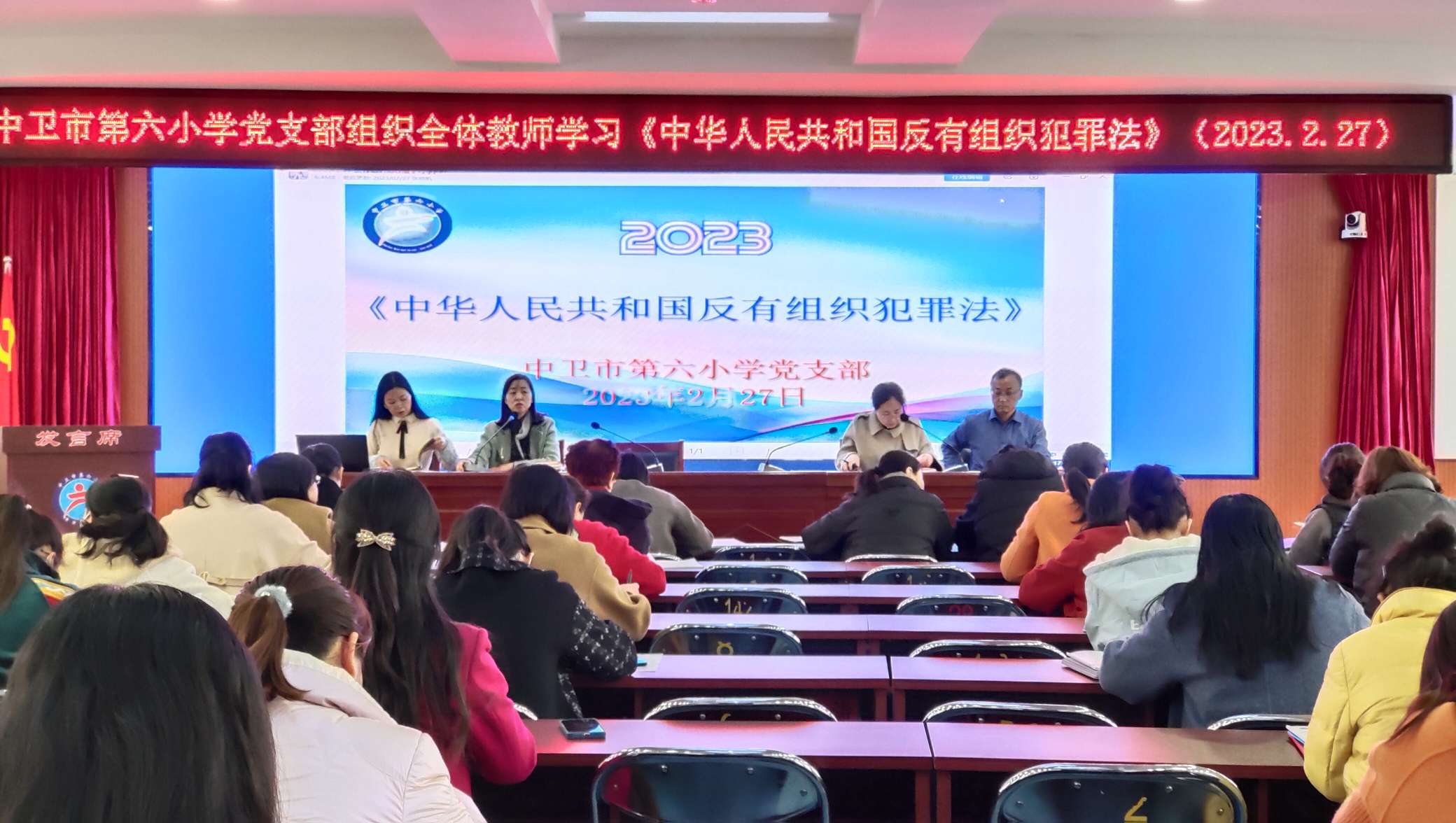 为防范有组织犯罪侵害校园,加强反有组织犯罪的宣传教育,增强师生防范有组织犯罪意识,教育引导师生自觉抵制有组织犯罪,防范有组织犯罪的侵害。中卫市第六小学党支部于2023年2月27日下午在四楼会议室组织全体教师学习了《中华人民共和国反有组织犯罪法》(以下简称反有组织犯罪法)。