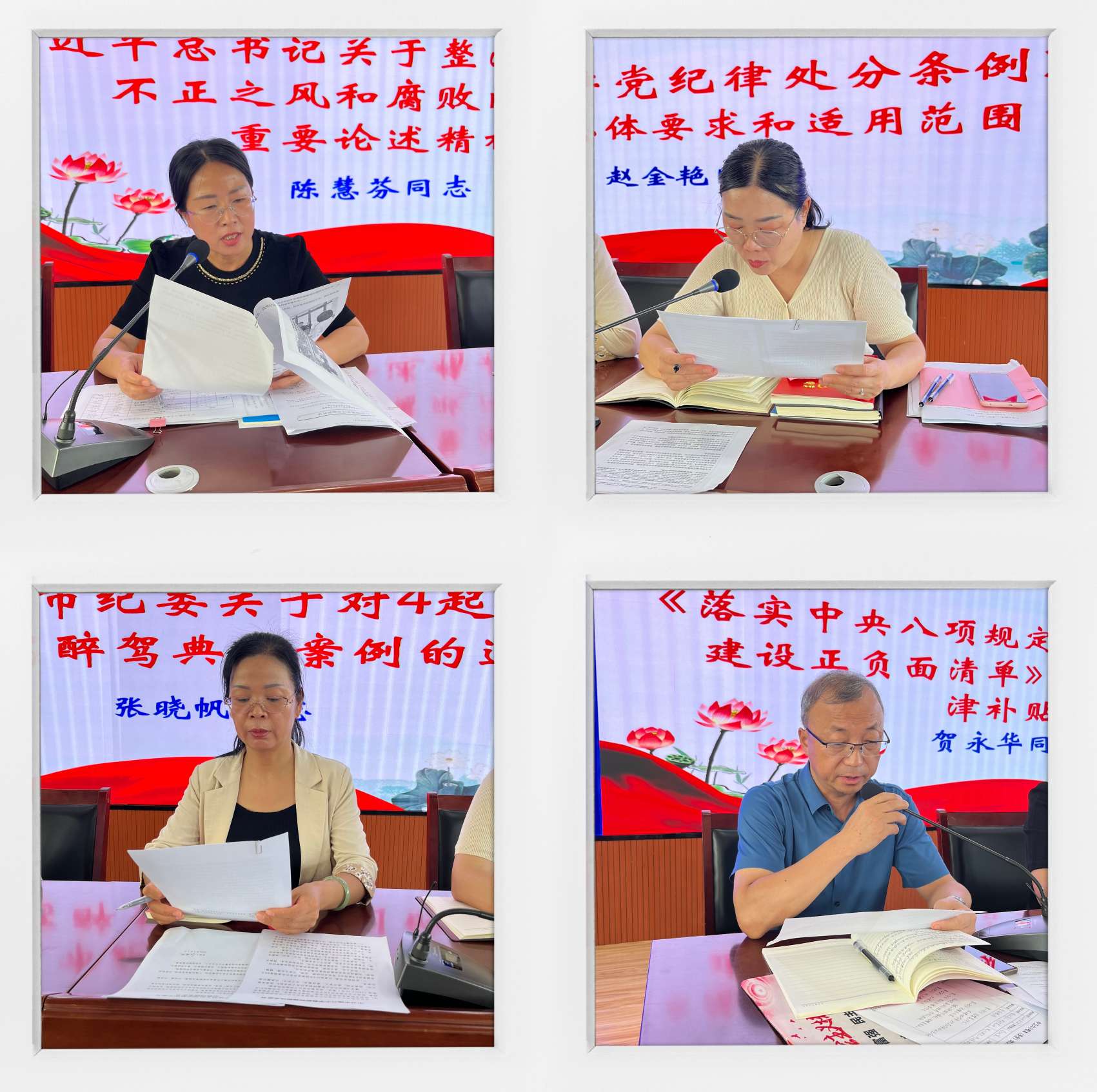 理论学习中,张莉娟、陈慧芬、赵金艳、贺永华、张晓帆五位同志分别传达学习了习近平《论党的自我革命》第四章中央八项规定是一个切入口和动员令,是长期有效的铁规矩、硬杠杠;习近平总书记关于整治群众身边不正之风和腐败问题的重要论述精神;《中国共产党纪律处分条例》第一章总体要求和适用范围;《落实中央八项规定精神加强作风建设正负面清单》负面清单和《中卫市教育系统党风廉政建设警示教育大会会议精神》等文件内容。学习中强调,我们要按照二十届中央纪委三次全会要求,突出常态长效深化落实中央八项规定精神,锲而不舍、常抓不懈、久久为功,直至化风成俗、形成习惯。做到学纪、知纪、明纪、守纪,进一步强化纪律意识、加强自我约束、提高免疫能力,增强政治定力、道德定力、抵腐定力,始终做到忠诚、干净、担当。