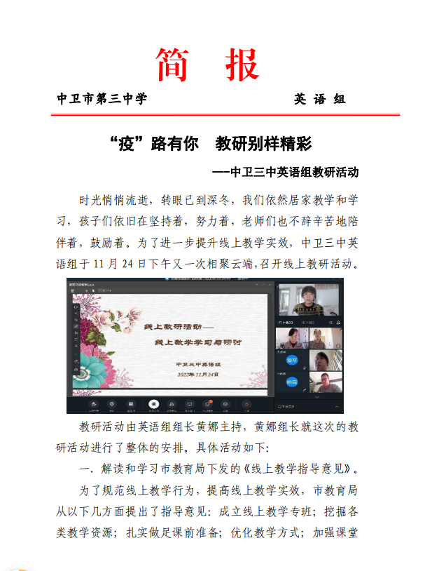 发布时间:2023-02-17 10:25 栏目:教研活动 发布单位:中卫市第三中学 点击量:995 【公开】