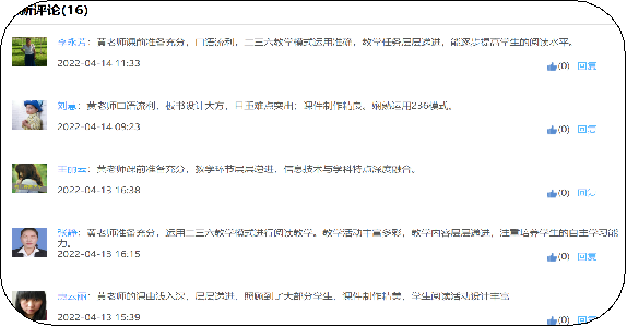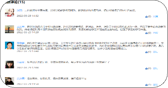 课伊始,趣已生;课继续,情更浓;课已完,意末尽……课后,老师们进行了网上评课、议课。大家畅所欲言,交流心得,积极研讨,在探索实践的道路上留下了思考的足迹!