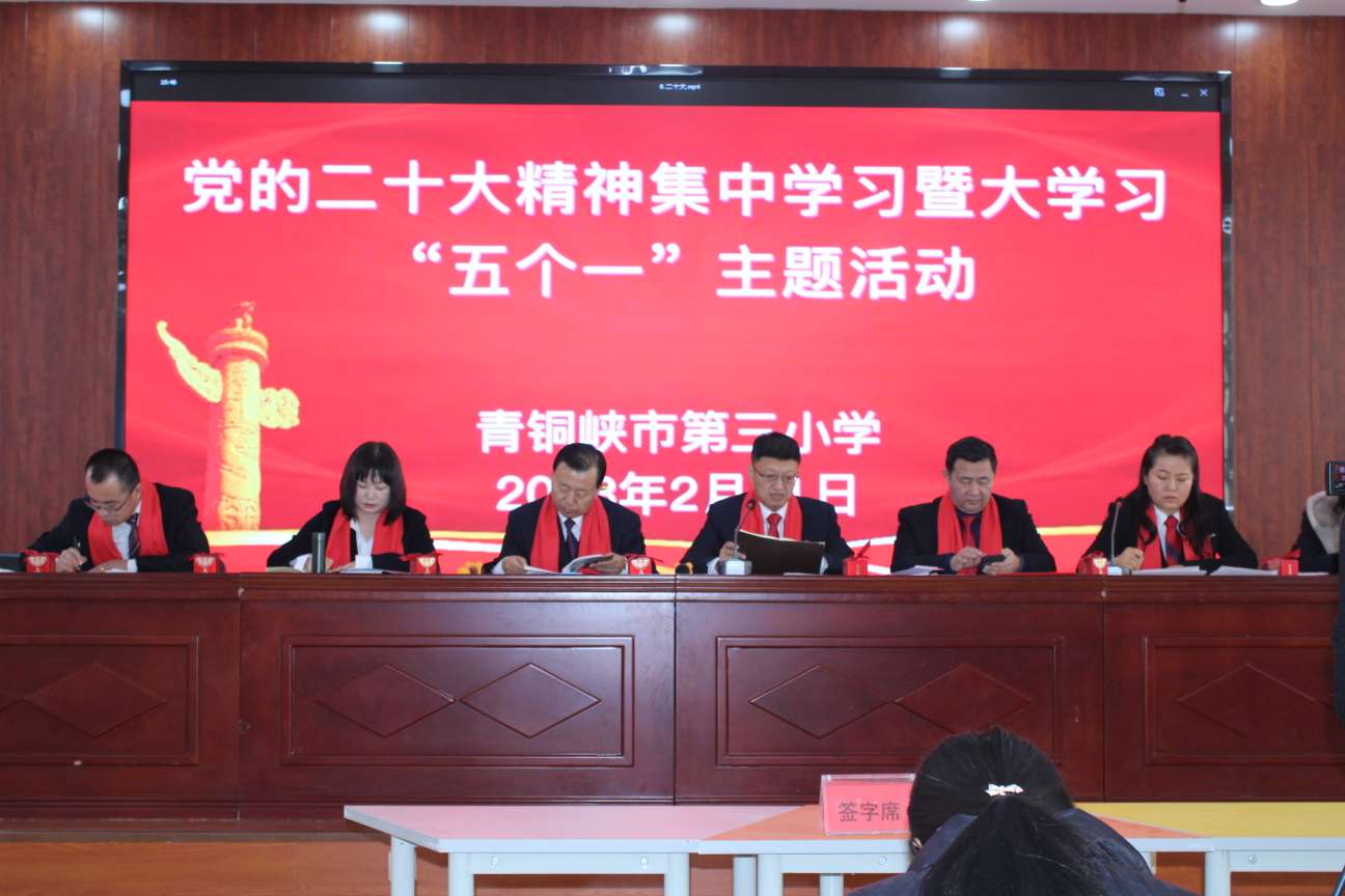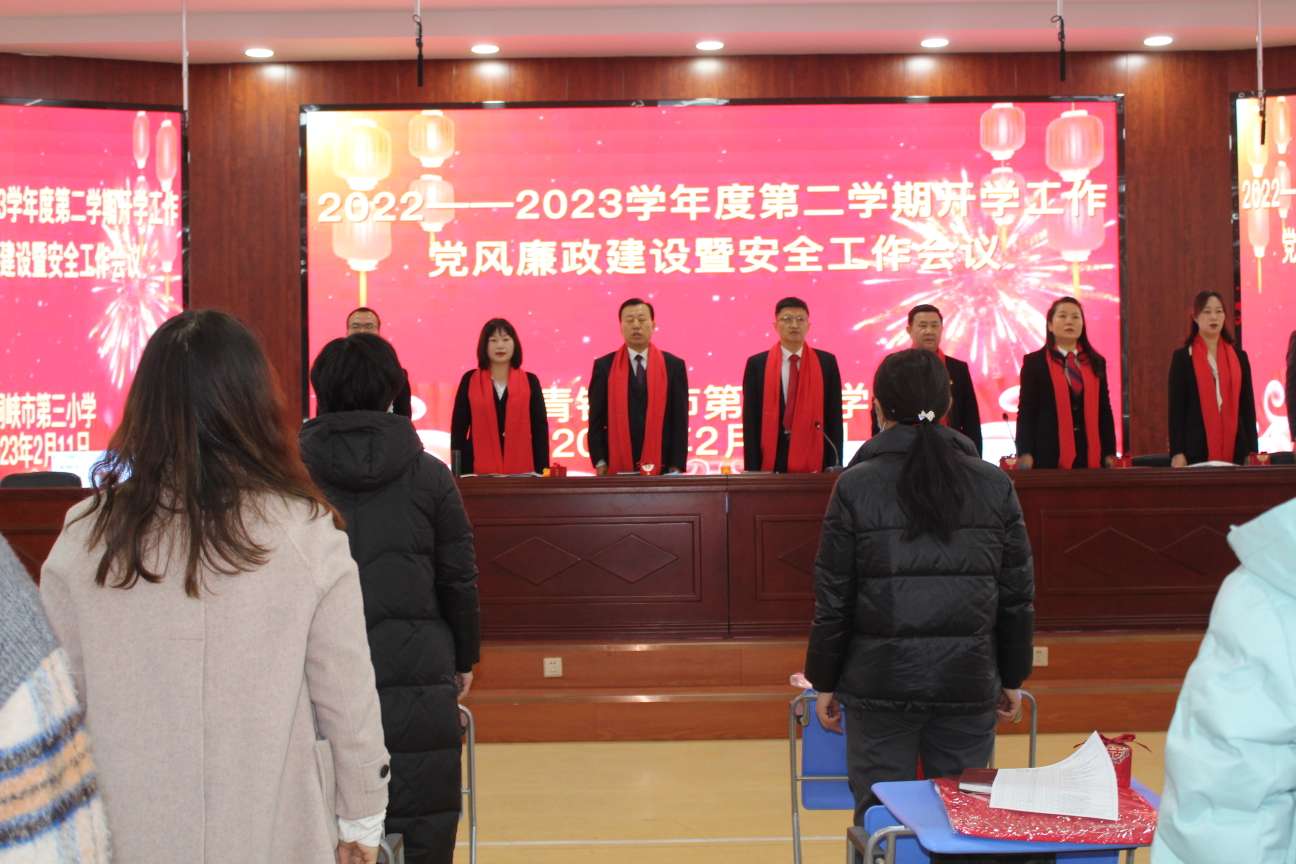 为全面贯彻落实党的二十大精神,确保学校春季开学工作高效、平稳、有序,2023年2月11日,青铜峡市第三小学组织召开了以“党建引领 培根铸魂 减负提质 踔厉前行”为主题的开学工作大会。