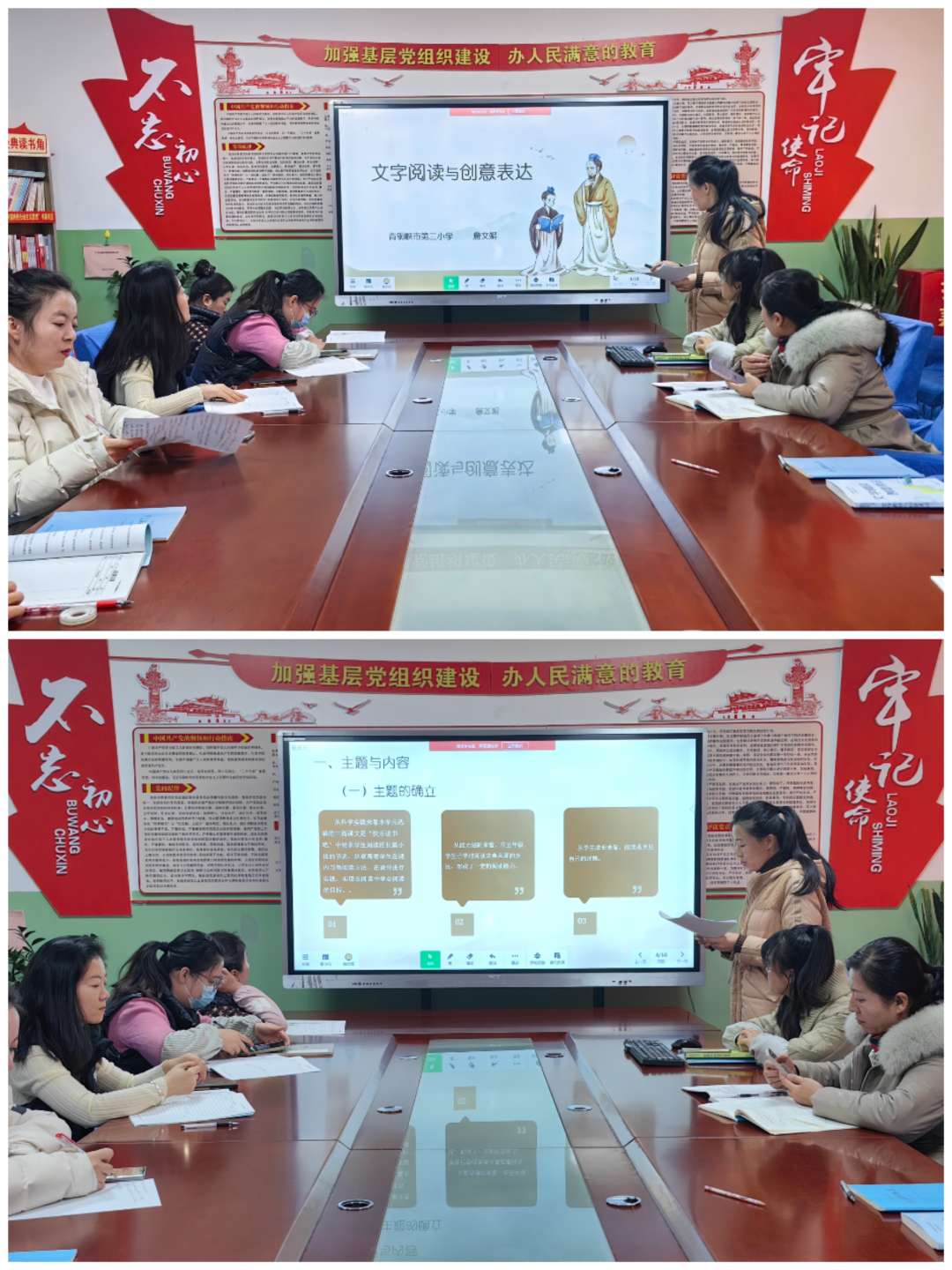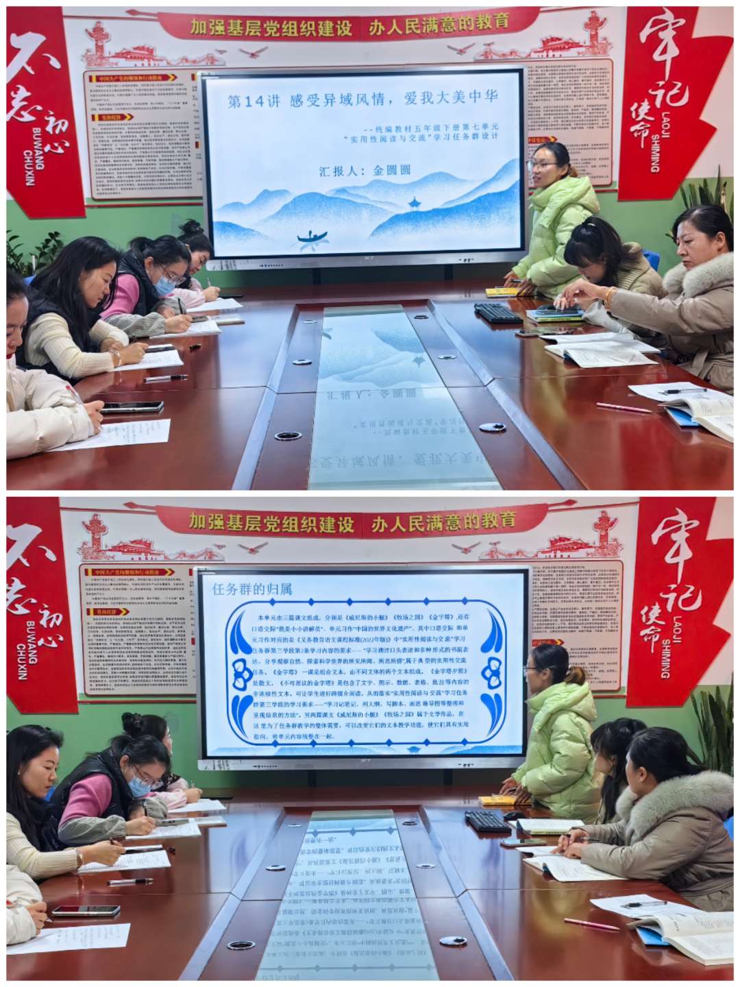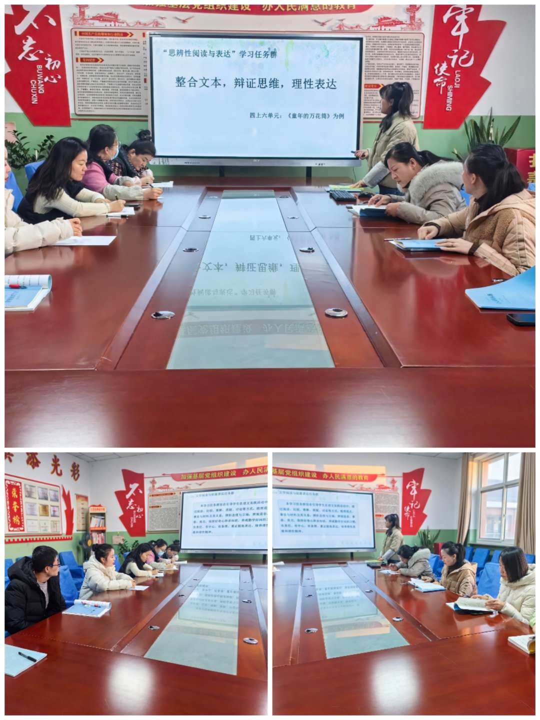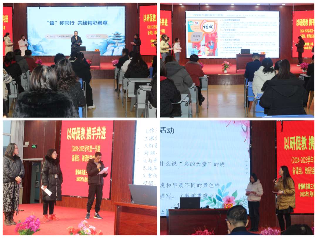各年级级语文备课组从教学达成情况、主要成绩及经验、教学反思与改进方向、下学期教学工作计划与目标方面进行了汇报,有主题有亮点,并且做出承诺,在新的学期将继续携手并肩,在教研之途齐心奋进,以学为导向,以教为践行。一路同研共进,沿着既定的目标勇敢攀登,愿集体备课之花常开不败,芬芳满园。