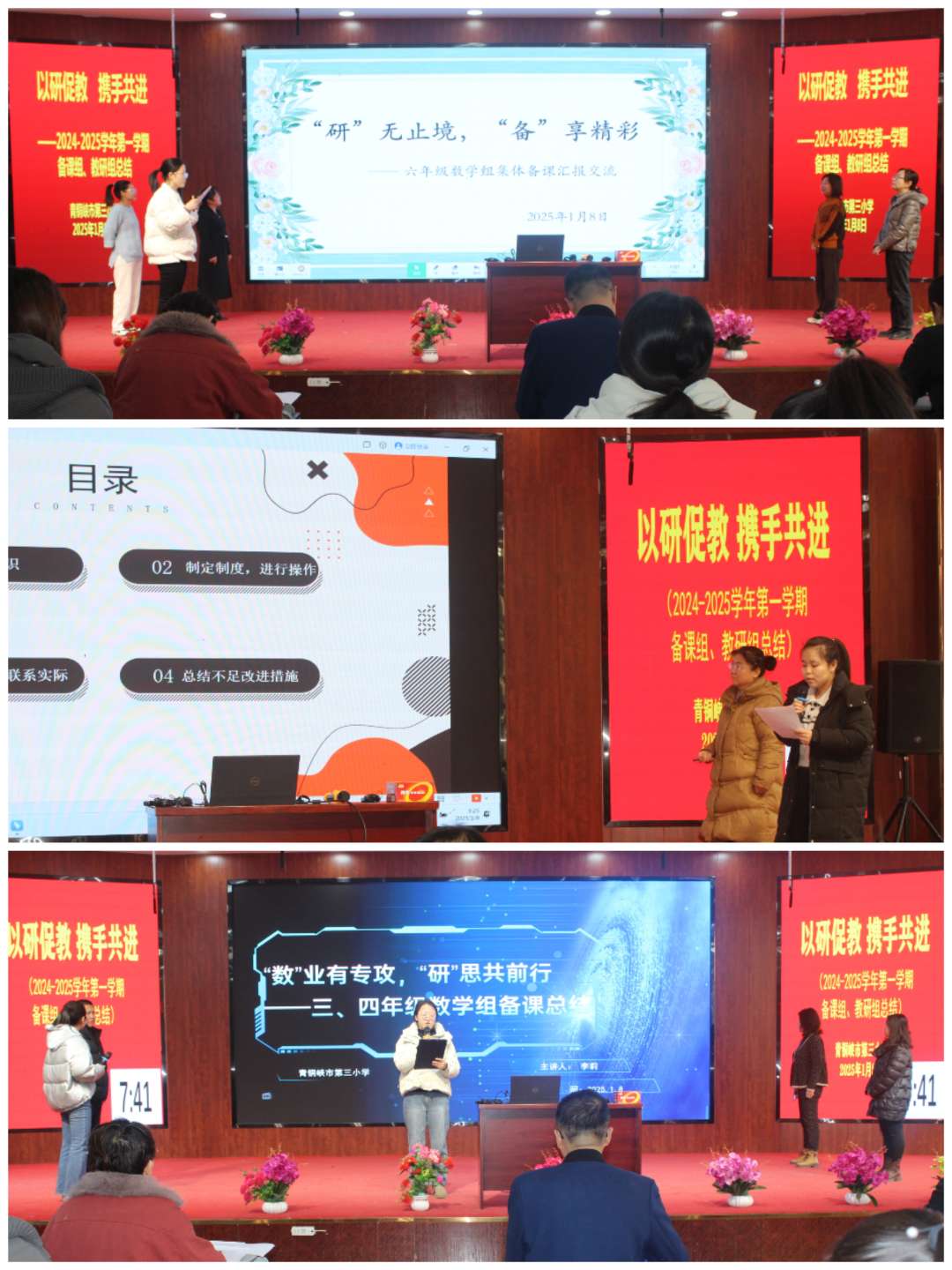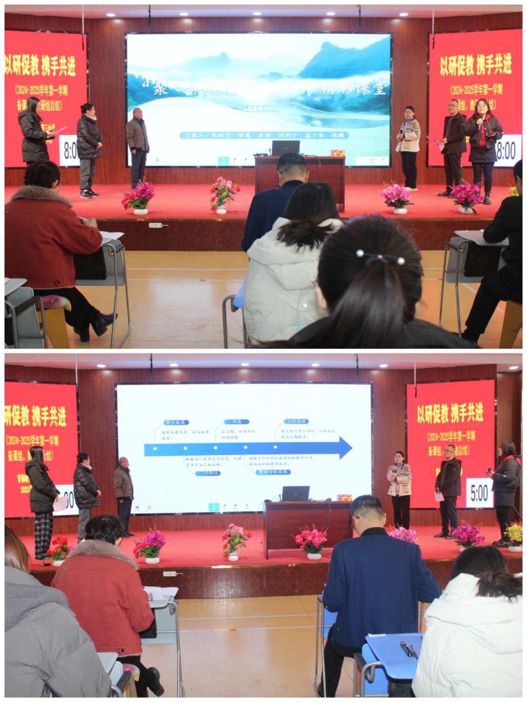1月8日上午,全体教师满怀热忱地相聚在二楼综合大厅,共同回望2024——2025学年第一学期那段充实且意义非凡的教科研征程。