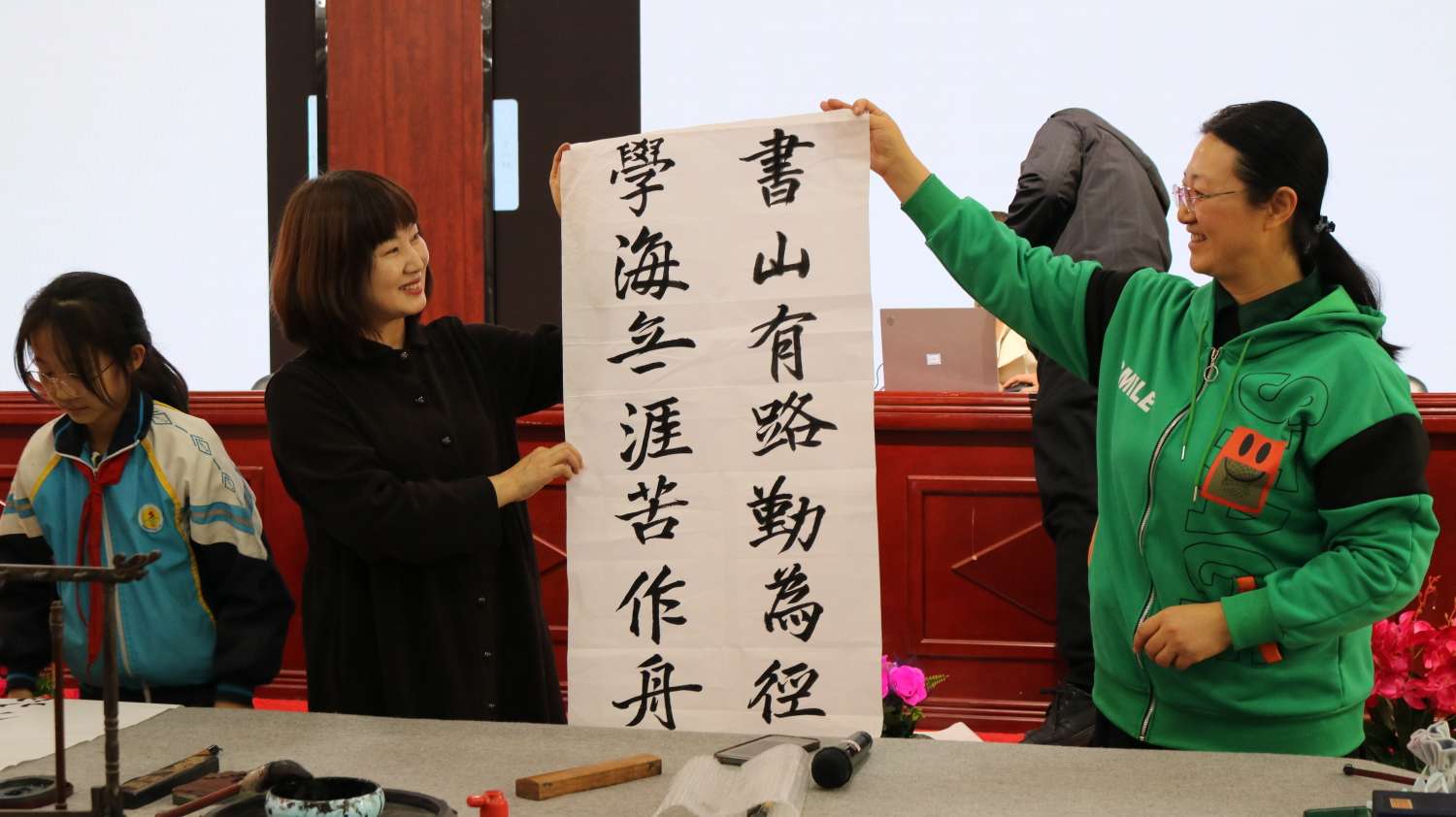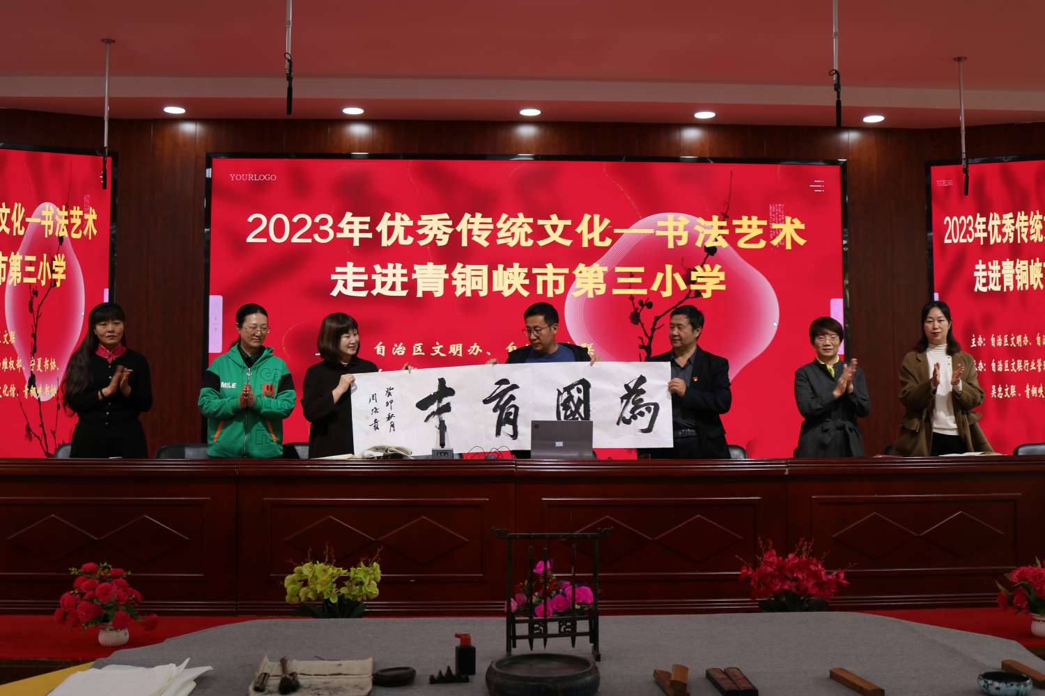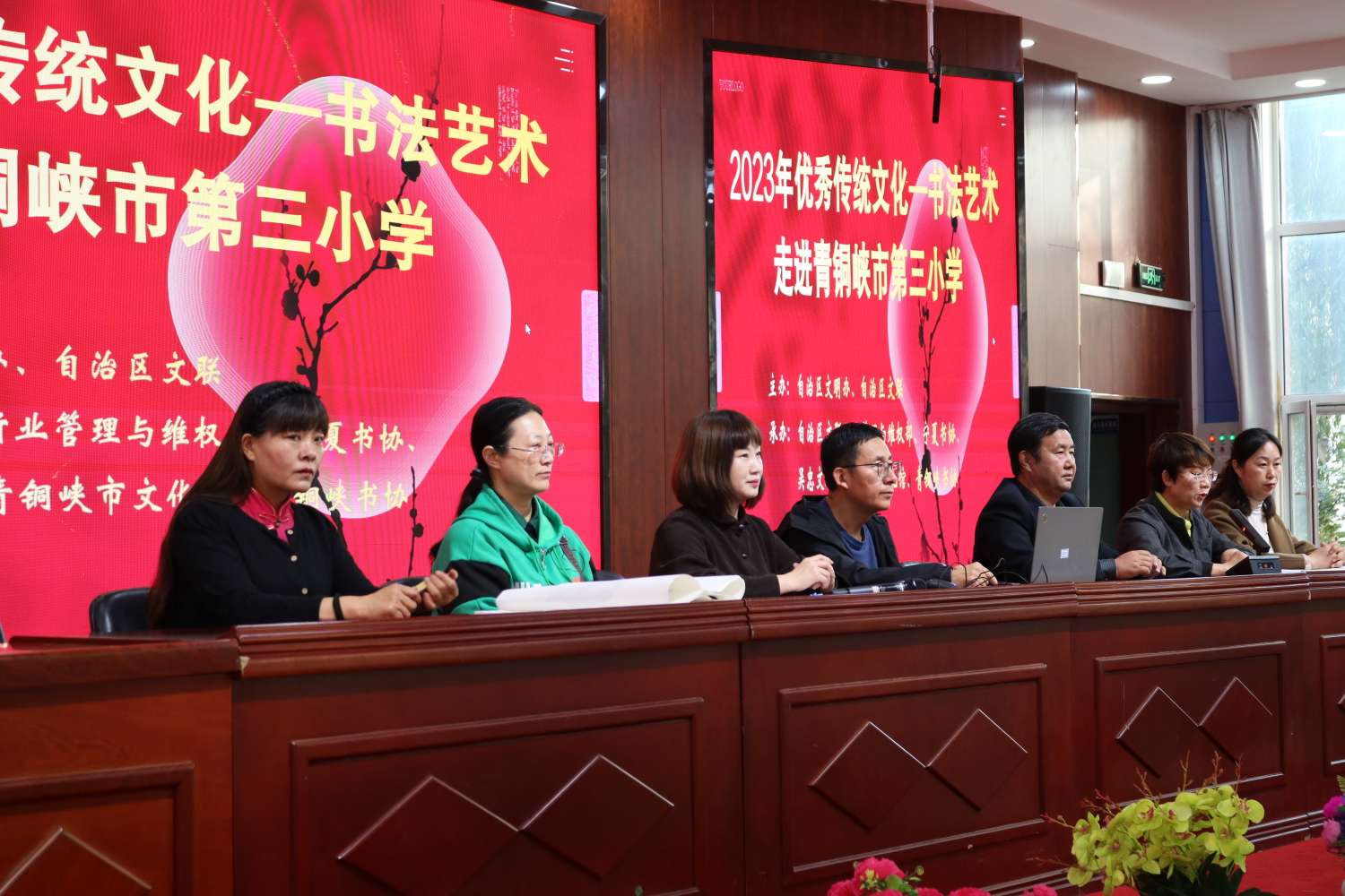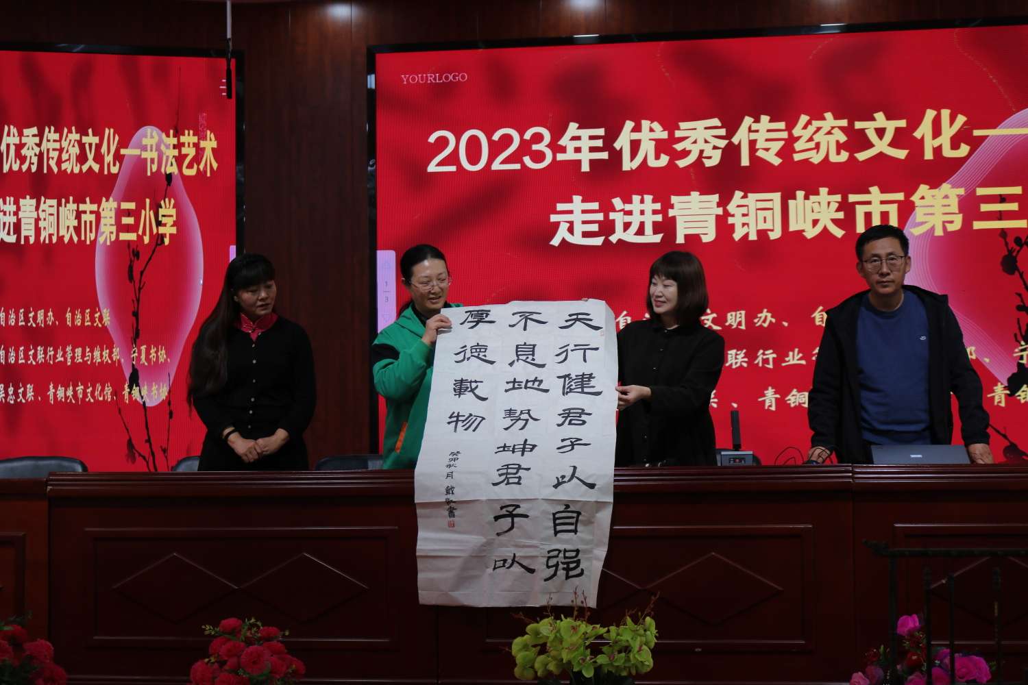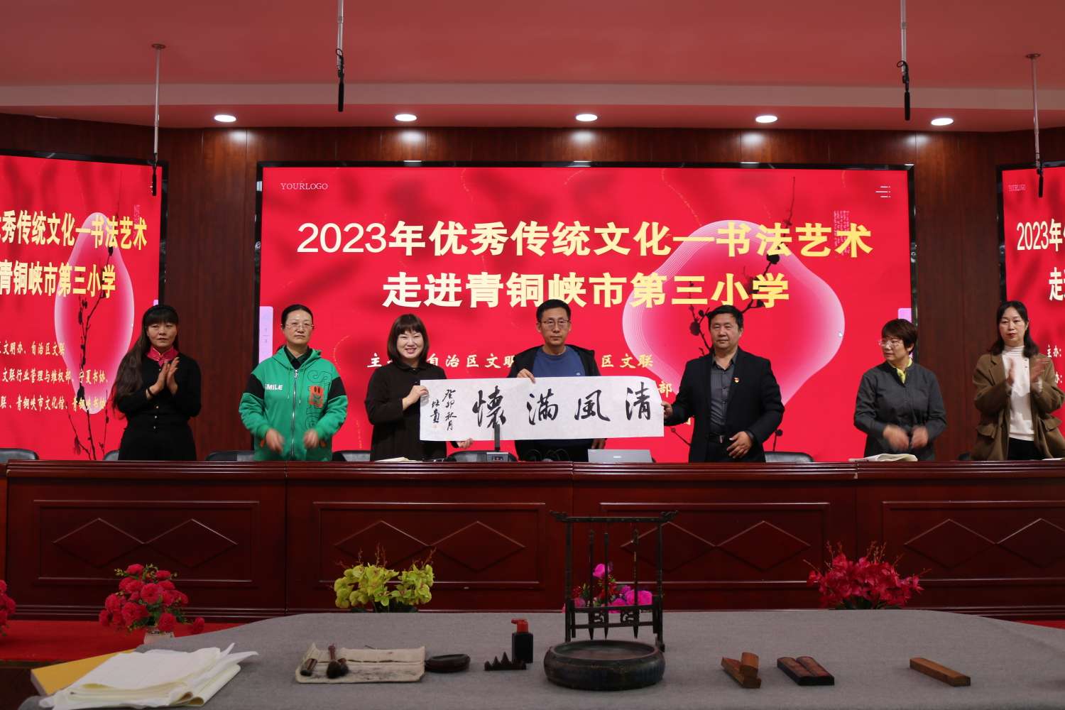宁夏书协、吴忠文联、青铜峡市文化馆为学校捐赠了书籍、书法作品和学习用品。