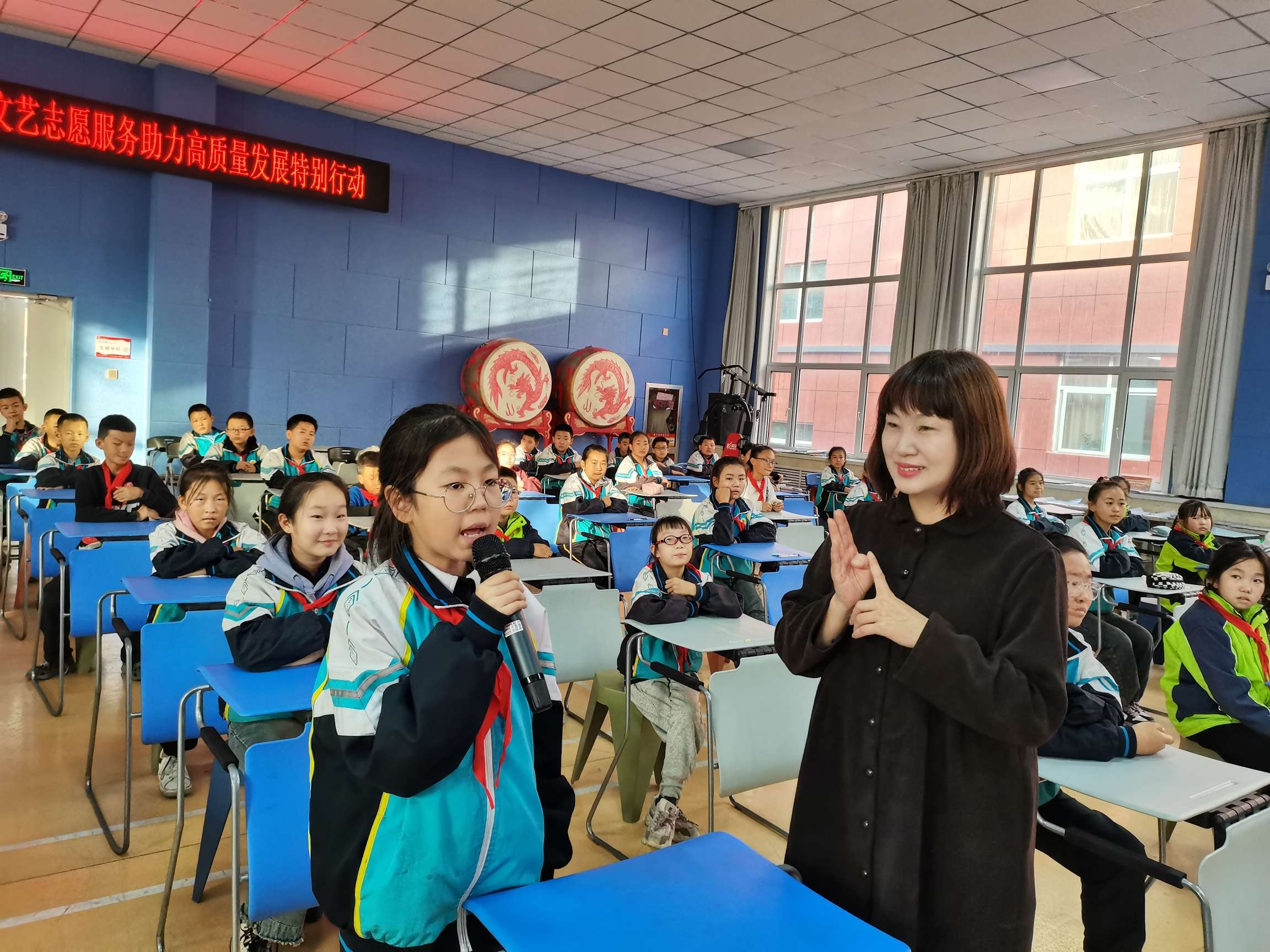 活动由德育副校长王汝涓主持。教学副校长赵玉霞进行致辞。