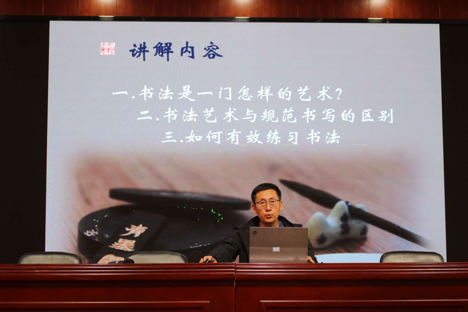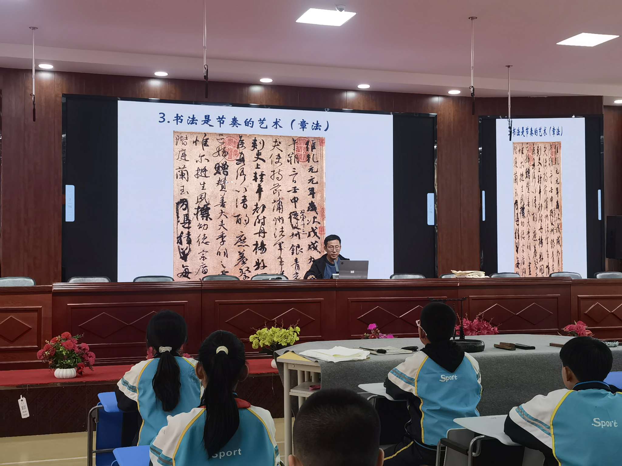 书法润心 墨香满园。宁夏书法家协会理事、吴忠市文联副主席、青铜峡市书法家协会主席周培贵老师为师生进行了书法艺术专题讲座。