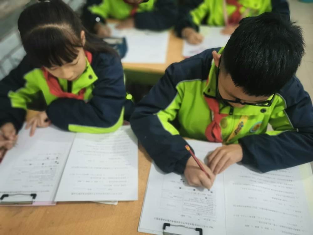 我们来瞧瞧比赛现场。每班选拔七人组成班级代表队进行激烈的角逐。同学们沉着冷静、认真审题、细心解题、工整书写,自觉遵守比赛规则,时而凝神沉思,时而奋笔疾书,时而回头验算。