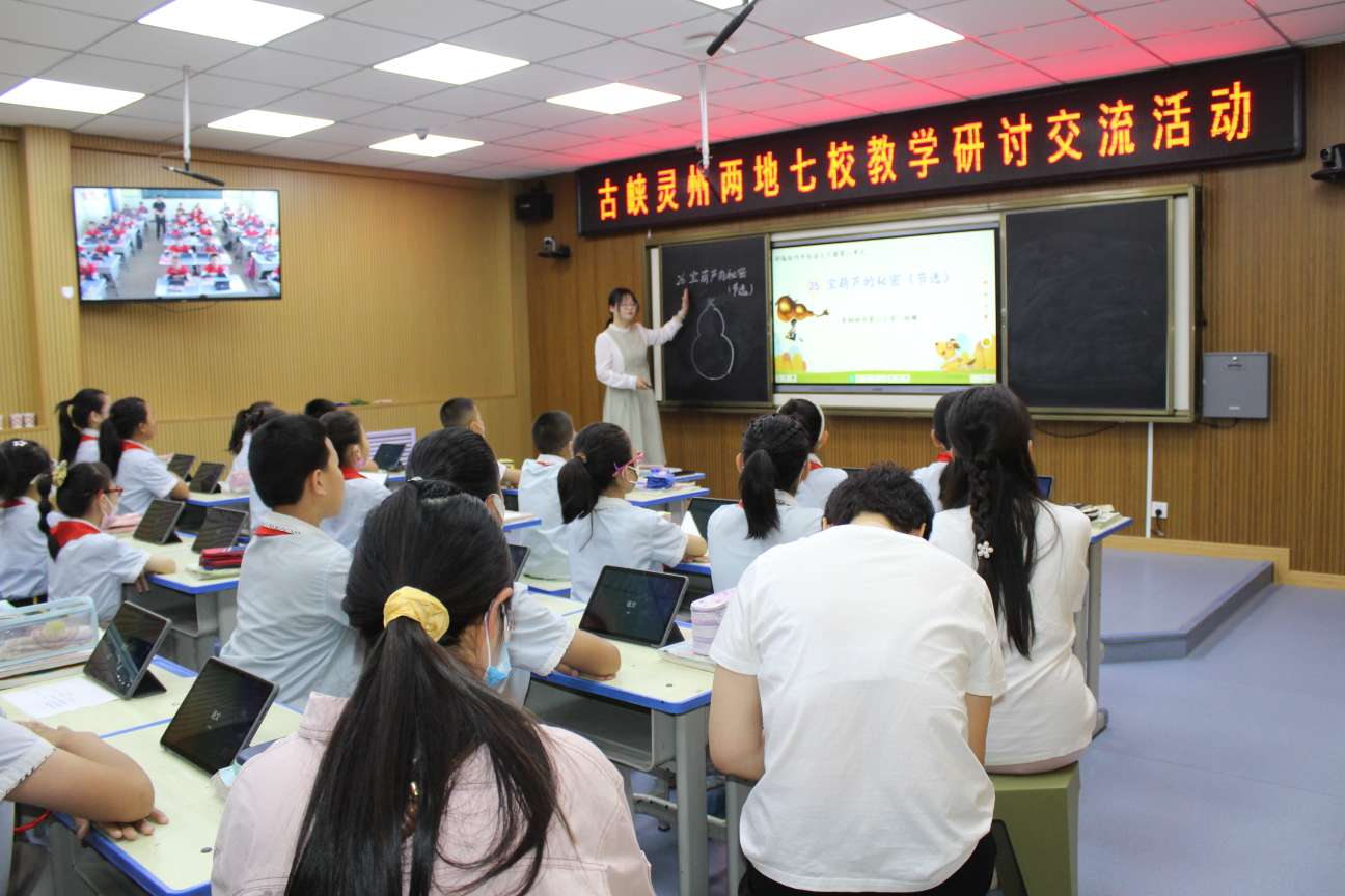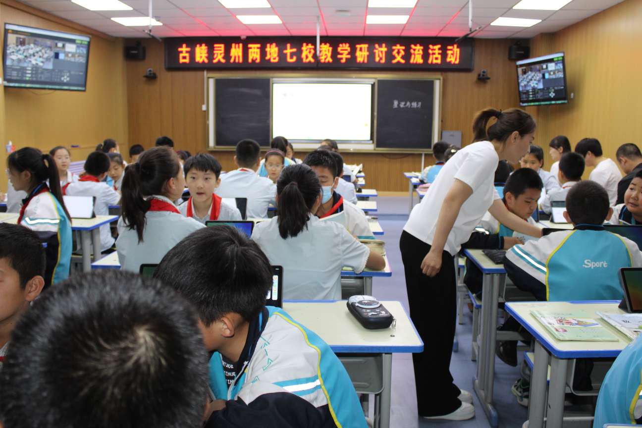 来访教师深入课堂,实地观摩了我校和移民学校同乐小学的“专递课堂+智慧平板”的教学展示,分别由四年级语文杨珊老师在线执教《宝葫芦的秘密》和五年级数学吴娟老师在线执教《圆的整理与练习》。