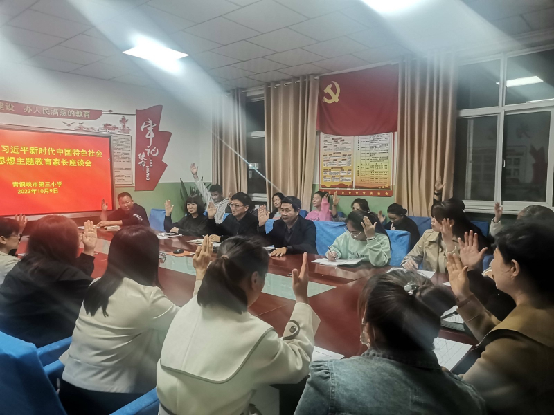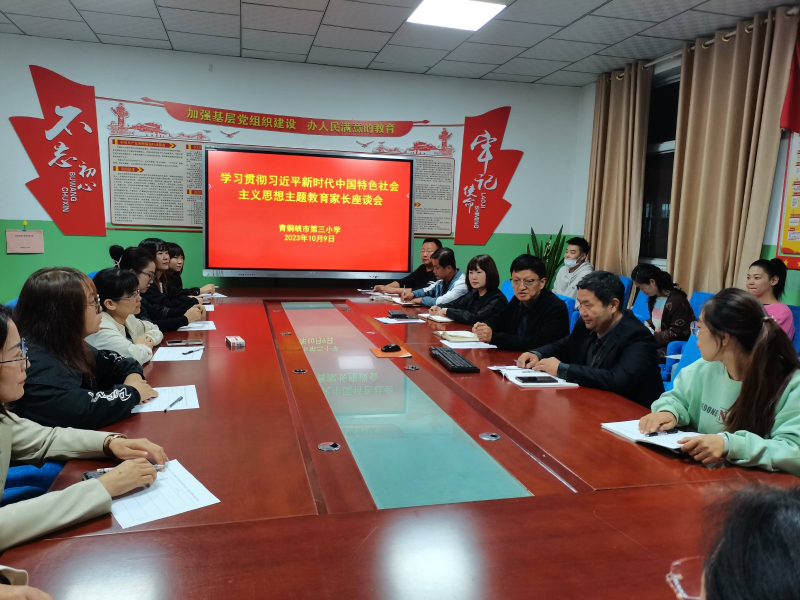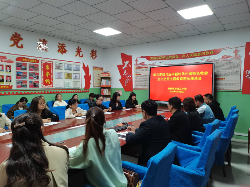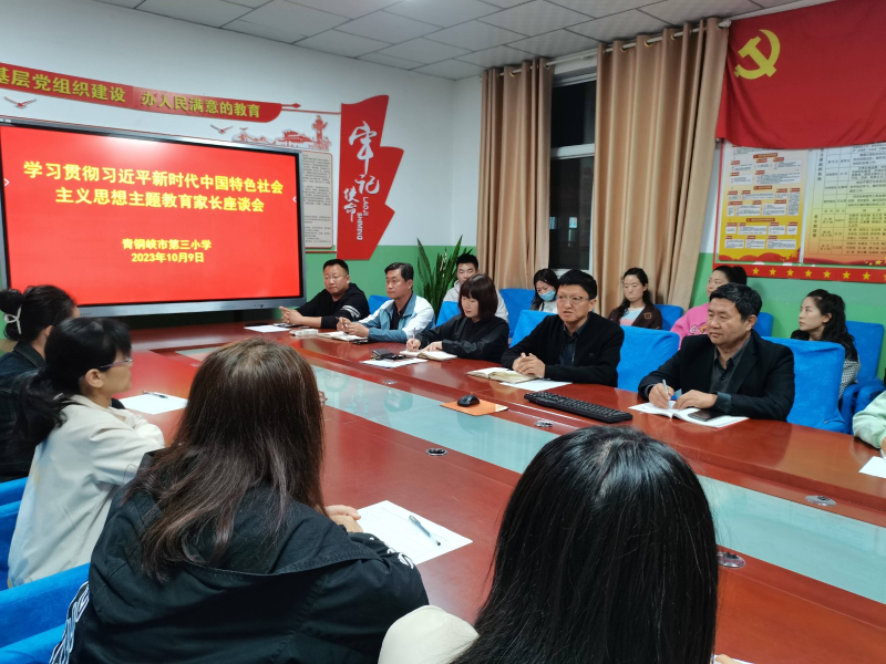 10月9日,青铜峡市第三小学召开学习贯彻习近平新时代中国特色社会主义思想主题教育家长座谈会。座谈会上,学校党支部书记、校长秦烨向家长汇报了学校基本情况,并介绍了学校开展主题教育情况。参加座谈会的家长们畅所欲言,对学校发展、管理、课堂、活动等方面提出了意见建议。座谈会最后推选产生了学校新一届家委会主任。
