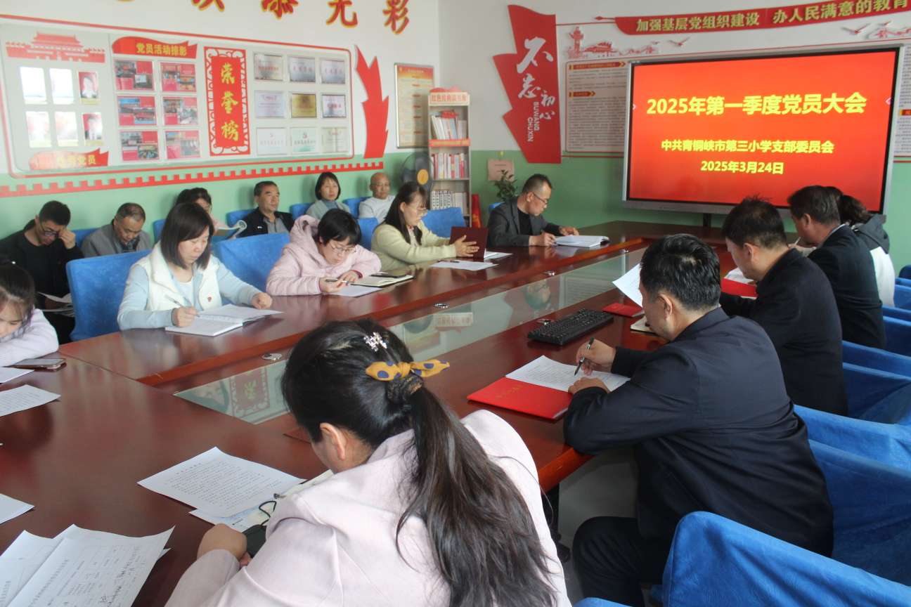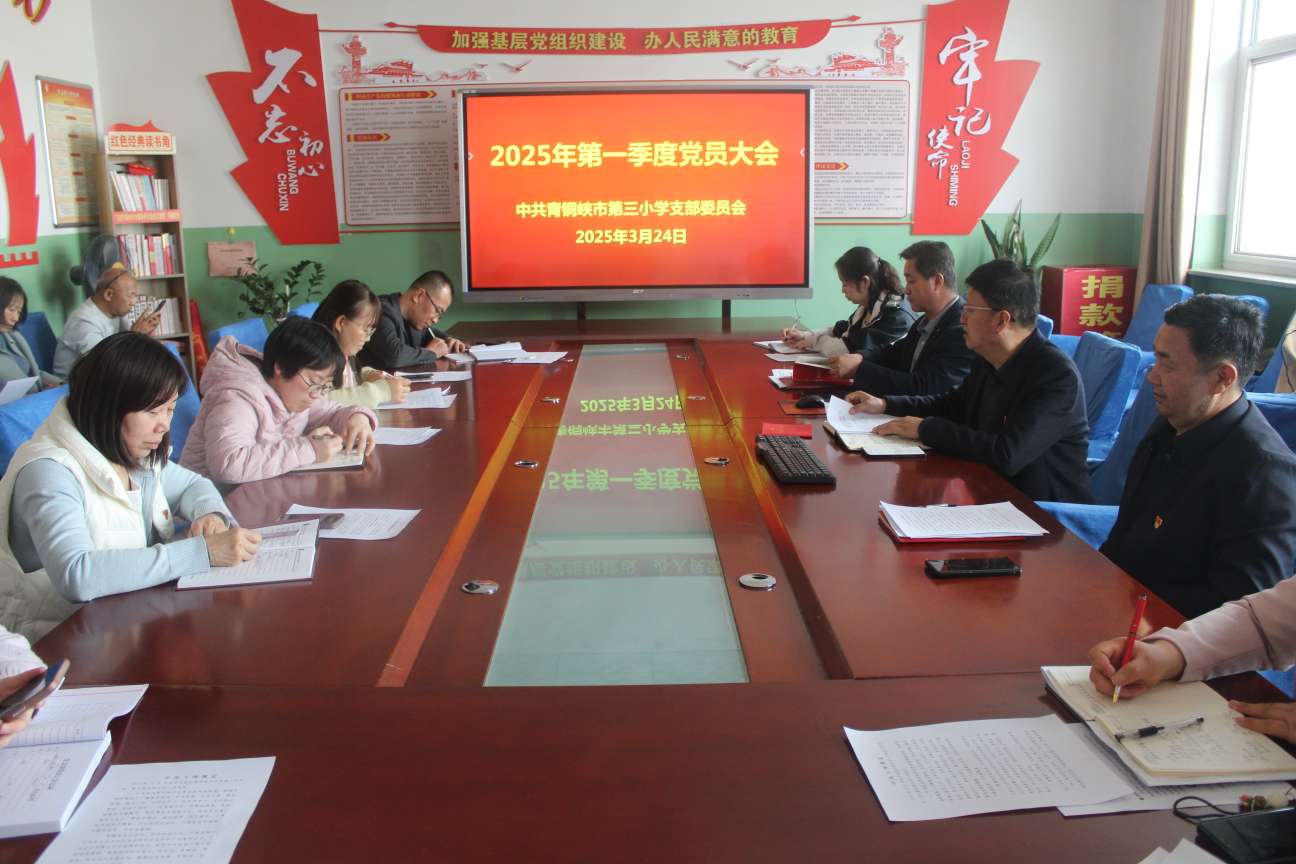 为扎2025 年 3 月 24 日,青铜峡市第三小学党支部成功举办第一季度党员大会,会议内容丰富,重点突出,旨在强化党员教师的政治素养与廉洁意识,推动学校党建与教育事业高质量发展。