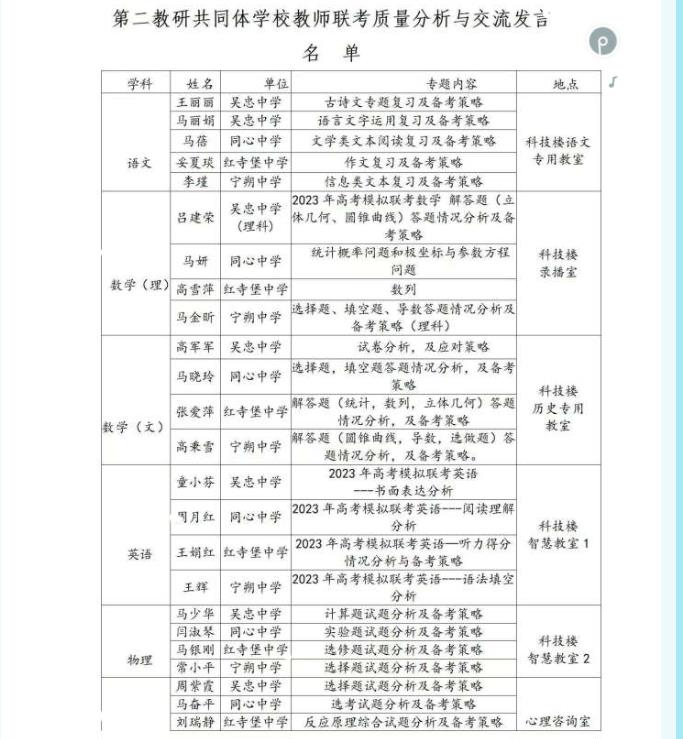 2023年吴忠市第二教研共同体 高考模拟联考质量分析与专题研讨
