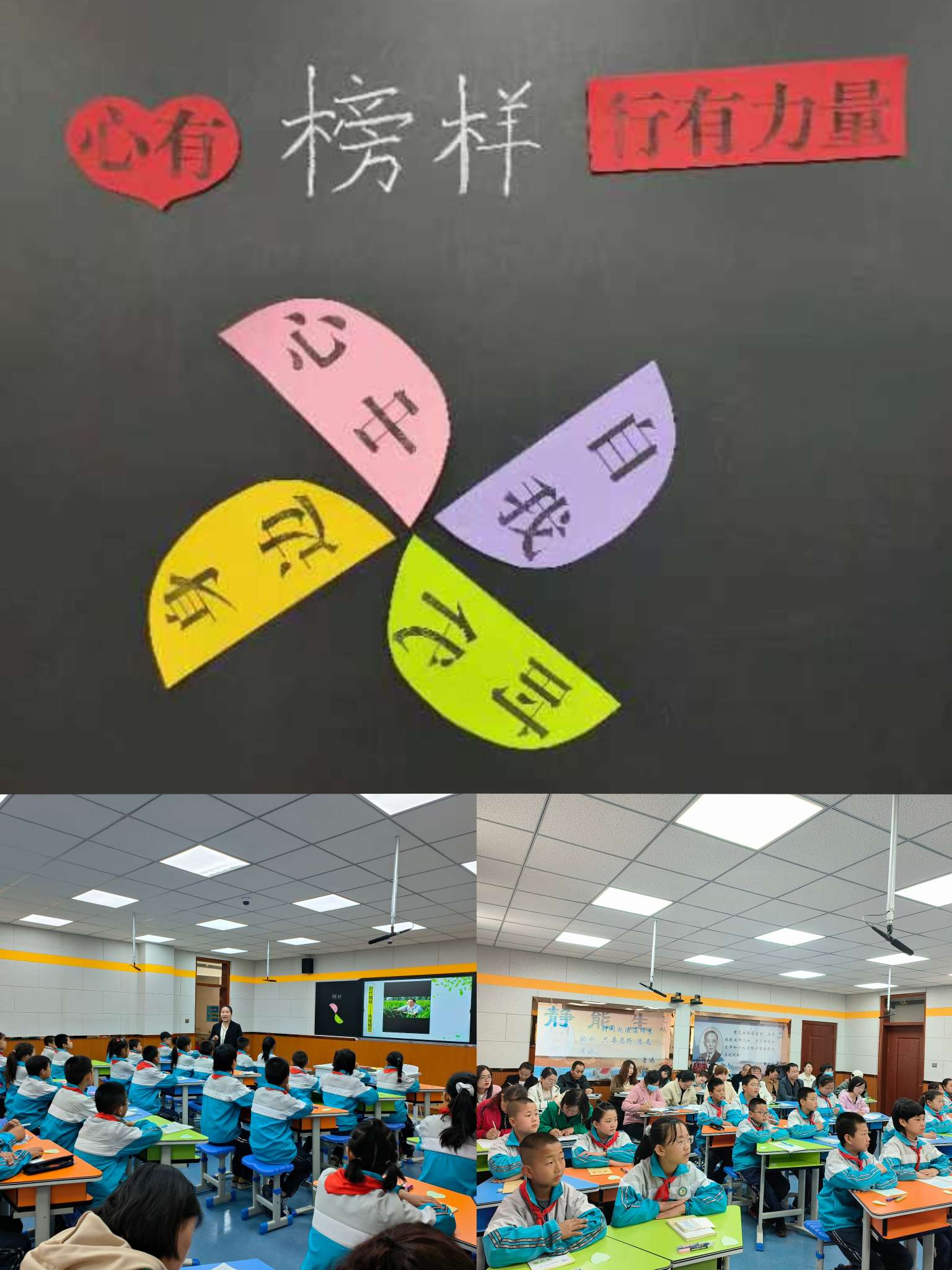“千淘万漉虽辛苦,吹尽狂沙始到金。”首先进行的是吴莹老师的主题班会——心有榜样行有力量。吴老师精炼的教育语言,落落大方的台风,从“心中榜样、时代榜样、身边榜样”三个模块落实到了每个学生的身边,鼓励学生在今后的学习生活中,以榜样为标杆,坚持梦想,服务他人,贡献社会,成为优秀的自己,实现自己的价值,争做新时代好少年。赢得的听课老师的一致好评。