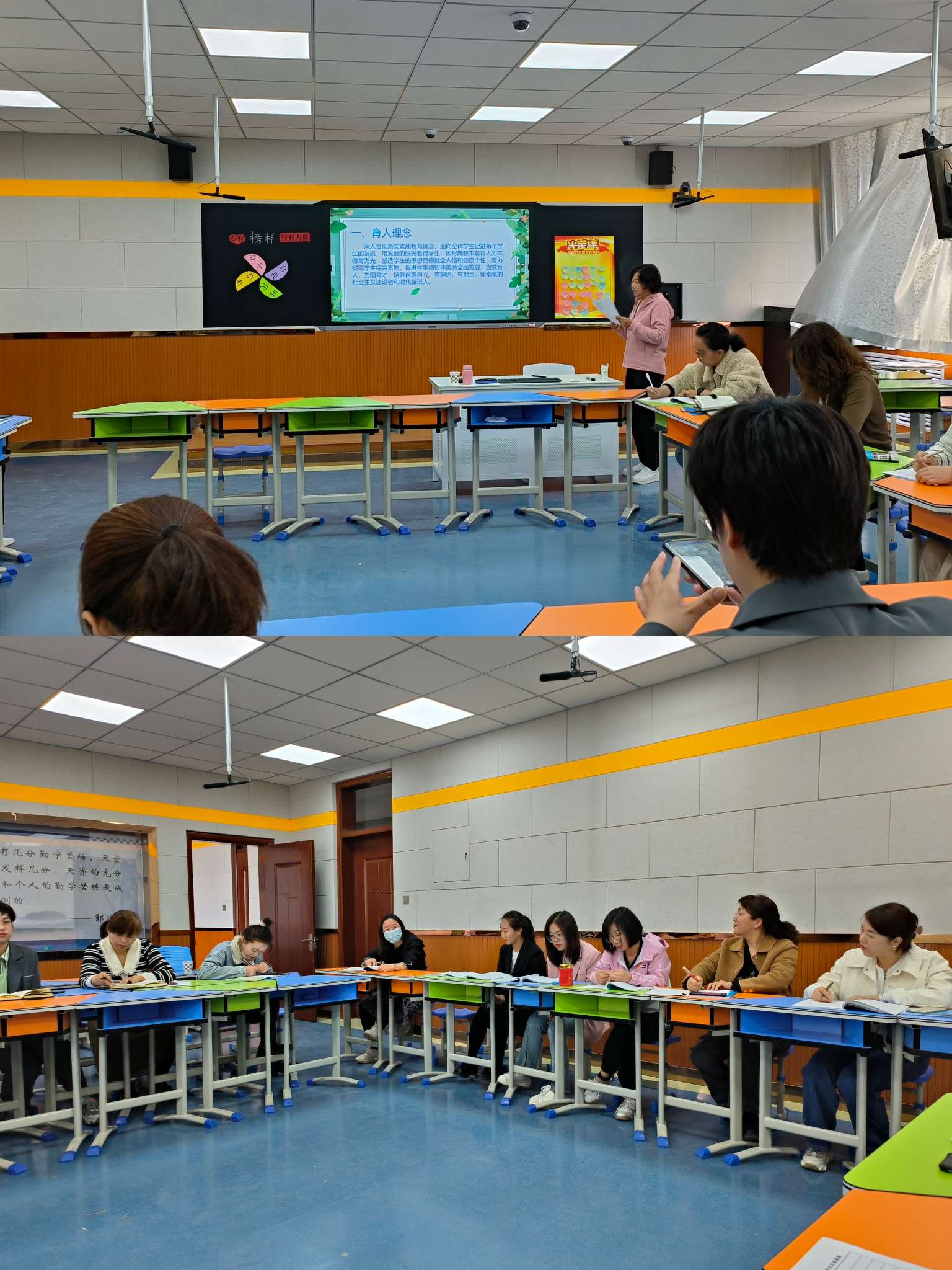 接着听课老师对本次活动的主讲老师进行了点评,老师们一致认为四位老师精心准备,紧扣“班主任工作”主题,从实际日常班级工作出发。根据不同年段,不同性格学生,实行不同的管理要求,将班主任工作的小事、碎事、细化、深化,真正落在实处。当然,老师们也提出了一些合理化的建议,就自己担任班主任工作中最困惑的事情展开了一场热烈的研讨,并且收获了满意的优秀管理方法。