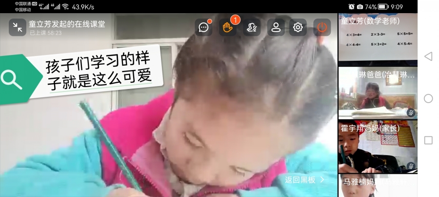 疫情很突然,我被突然居家隔离,没有任何教学助手,只能拿着课本,选课,听课,推课,重新备课,所有的准备都是为了做好线上教学工作,我家电脑不能视频只能自己捣鼓,不会操作就请教马宁清老师然后和万辉老师沟通后不停操作练习;空闲时间除了批阅学生的作业,就是研究线上教学方法来准备下一天的教学。我们班的13名孩子的家长很支持线上教学,按上级的指示利用宁教云进行教学,需要家长下载安装宁教云,有的家长不会但是主动请教老师,为了孩子毫无怨言地在老师的指导安装了宁教云,家长的大力支持,使我们有了更大的动力,我将尽我最大的努力上好网课。