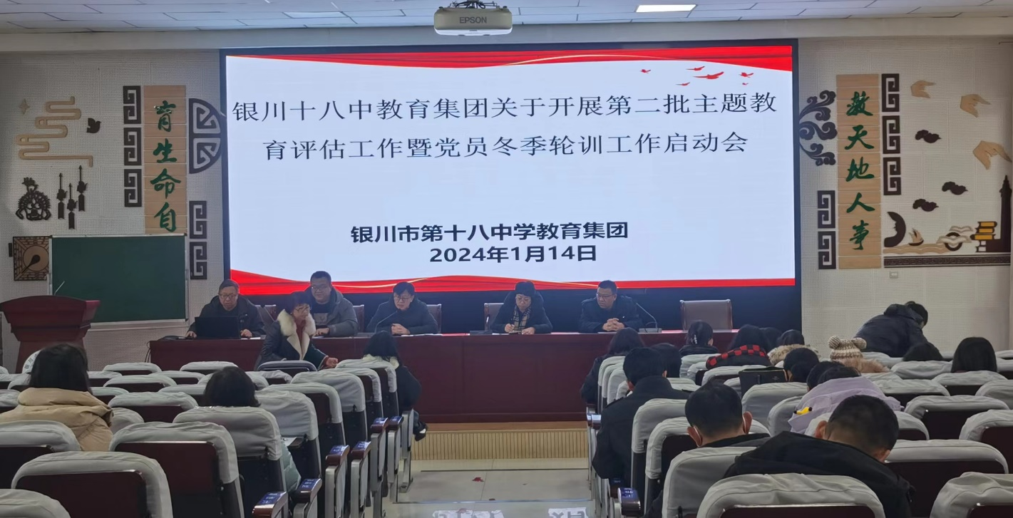 2024年1月14日上午,银川市第十八中学教育集团在全体教职工大会上开展第二批主题教育评估工作暨党员冬季轮训工作启动会。