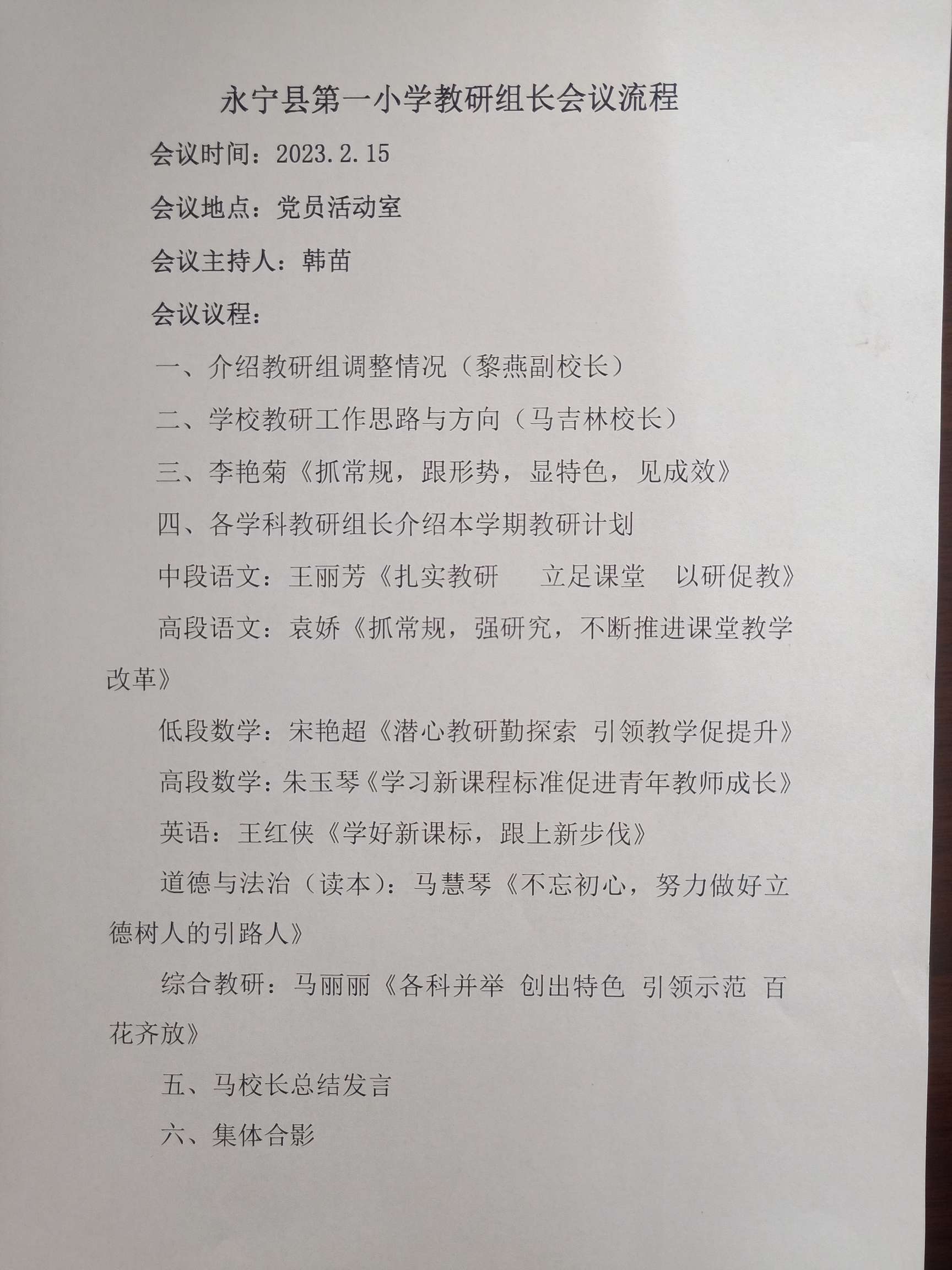 舟行万里,操之在舵。党的二十大报告指出,要“加快建设高质量教育体系”,而学校作为教育的主阵地,教研作为学校的主抓手,其重要性不言而喻。因此,我校于2月15日召开教研组长工作会议,马吉林校长、黎燕副校长、刘小乐副校长、各部门主任、各科教研组长参加会议。