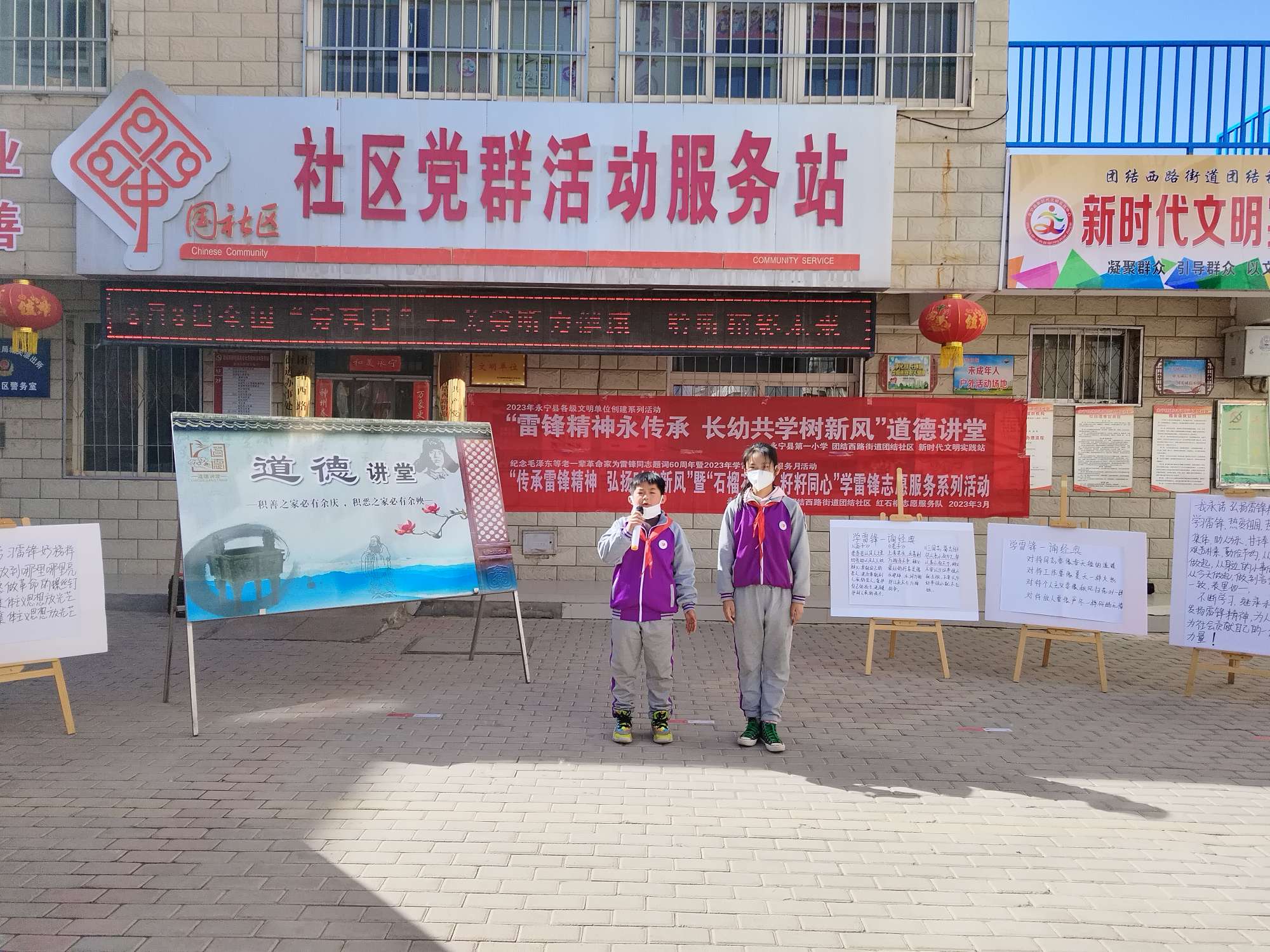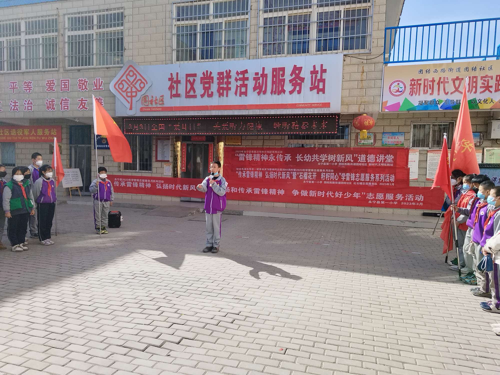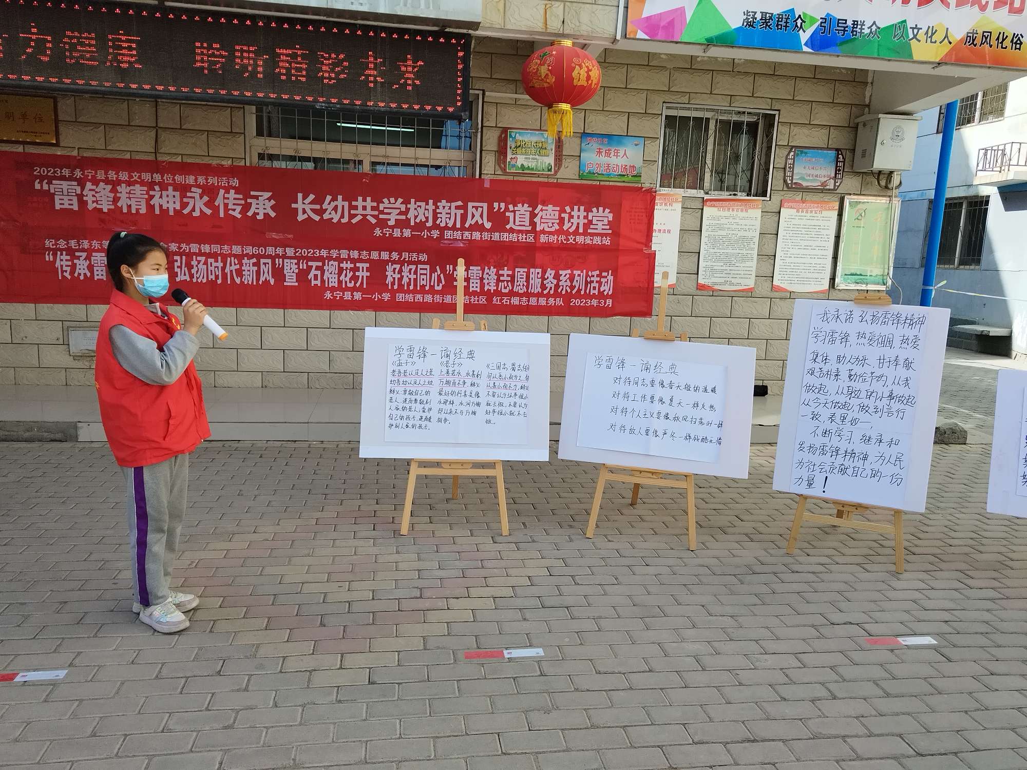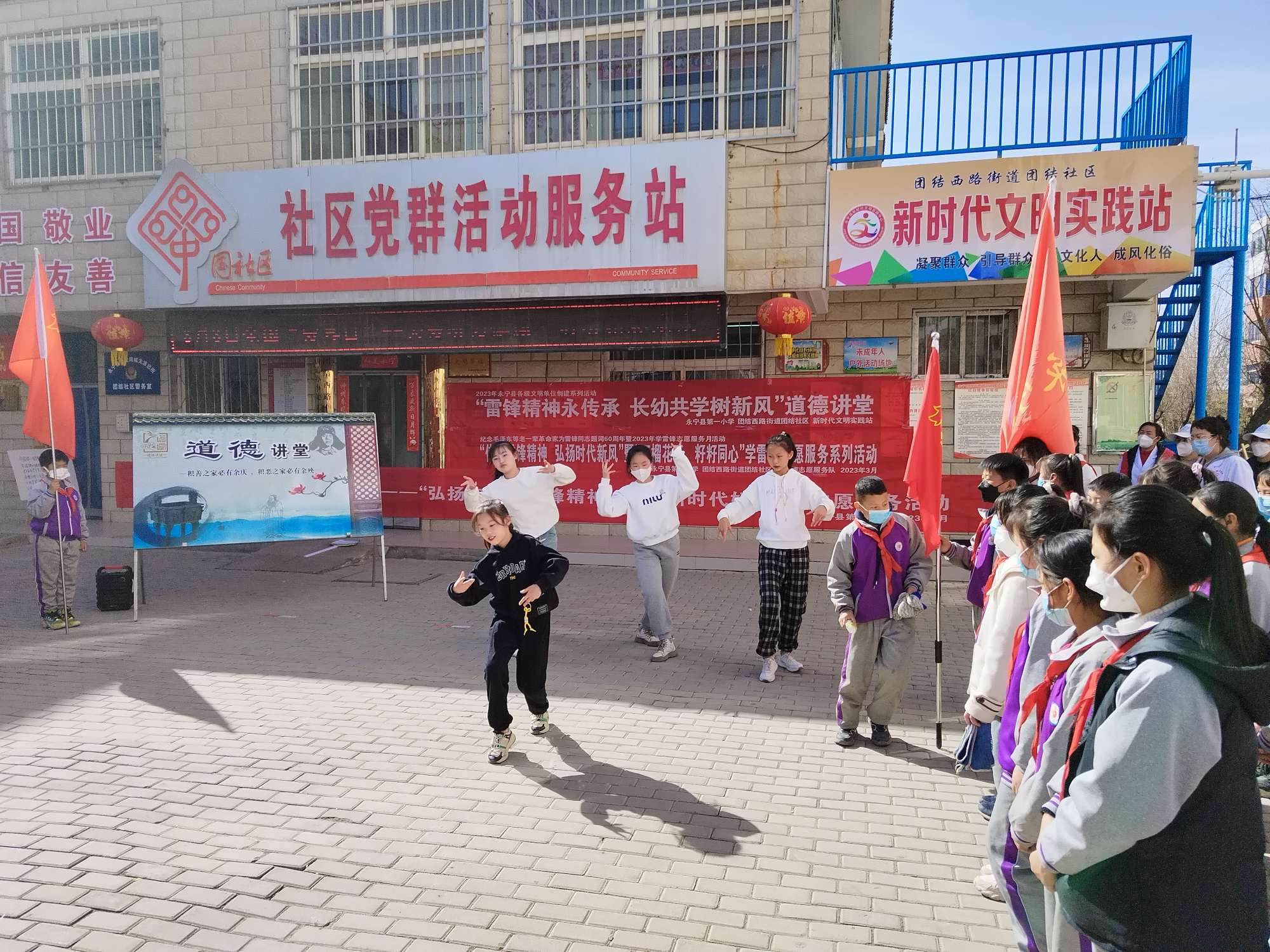 3月3日下午,永宁县第一小学组织学生进入团结社区,开展了“弘扬和传承雷锋精神争做新时代好少年”道德讲堂活动,以《学习雷锋好榜样》这首歌做为开场。通过讲雷锋故事,诵经典,舞蹈,单口相声等形式为社区居民带来欢乐。
