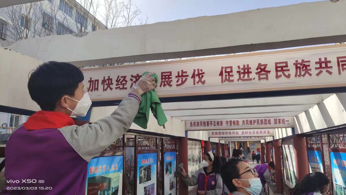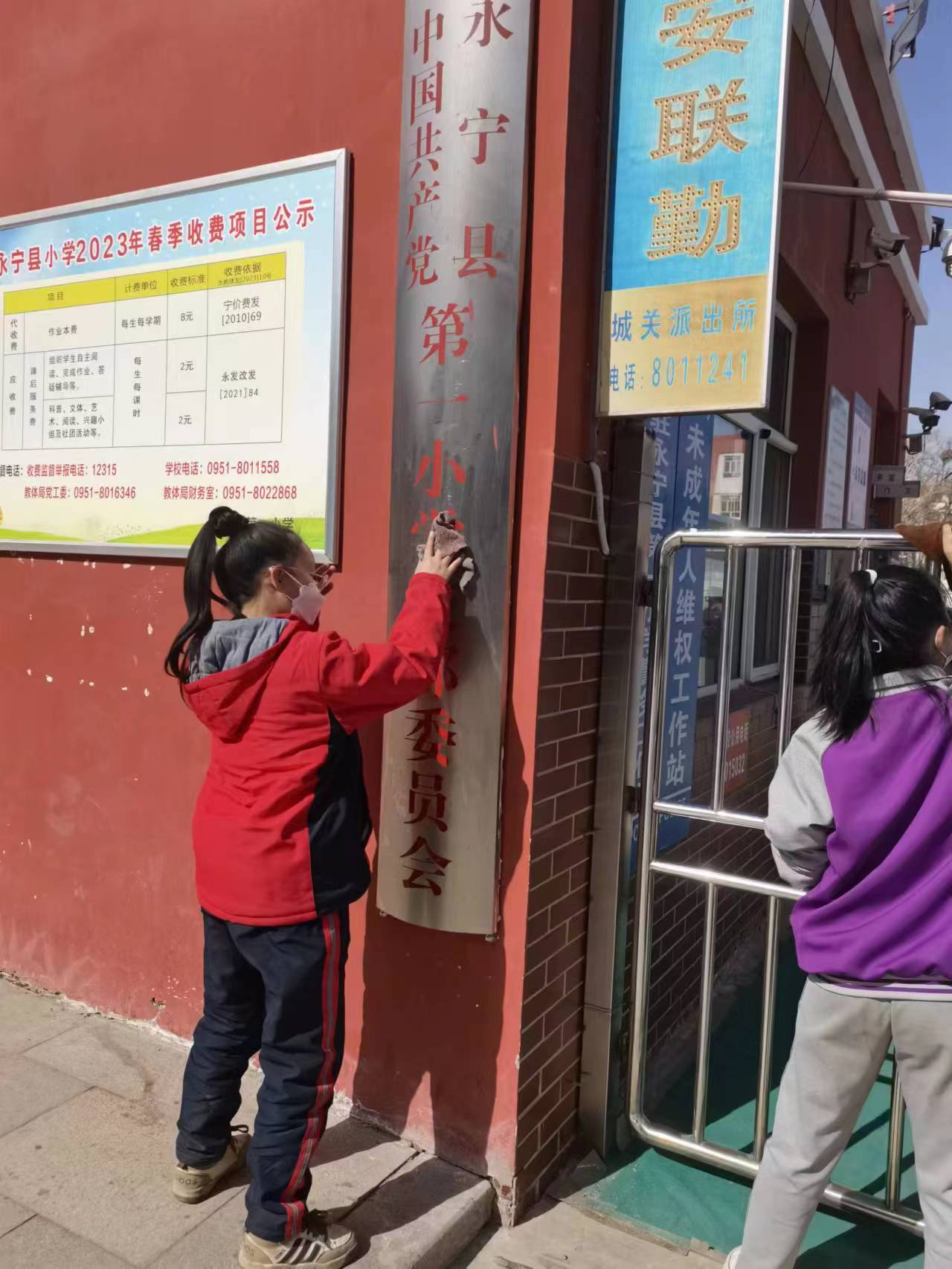 永宁县第一小学和团结社区组织学生开展“弘扬和传承雷锋精神 弘扬时代新风”学雷锋志愿服务活动。兵分两路,分别对校门口马路两侧,社区进行了清理。