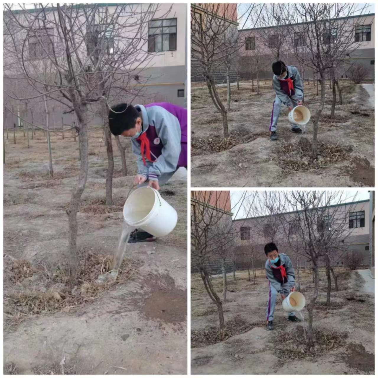 恰逢周天,同学们利用社会实践活动的机会,扛起铁锹,提起水桶,参加植树活动。