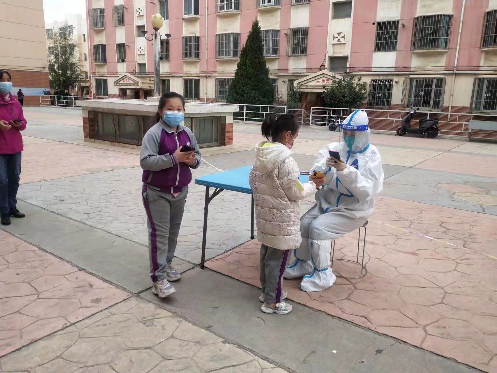 每次在核酸检测点总能看到她认真协助检测工作的身影。引导群众有序排队等候采样、检查健康码核酸码喊得嗓子发哑、耐心帮助不会使用核酸码的人群解决扫码问题……这些已是她非常熟悉的工作流程。我校领导总是关心她的近况,打电话嘱咐这位年轻的教师,一定要注意个人防护,她总是笑着说:“没事儿”。
