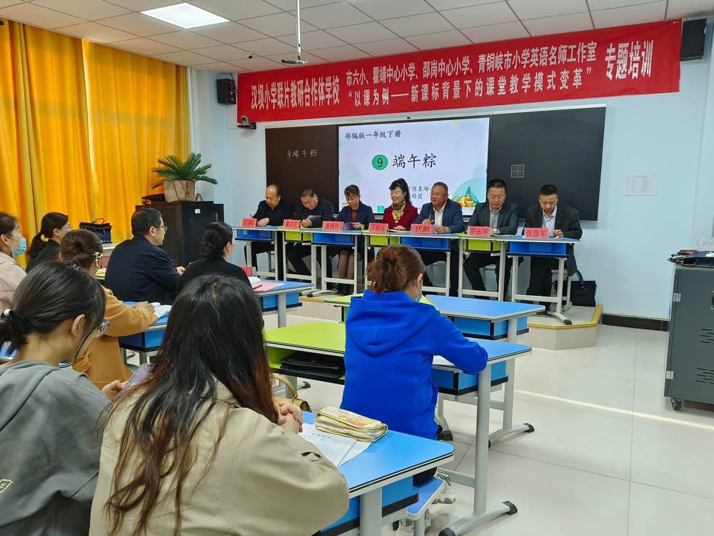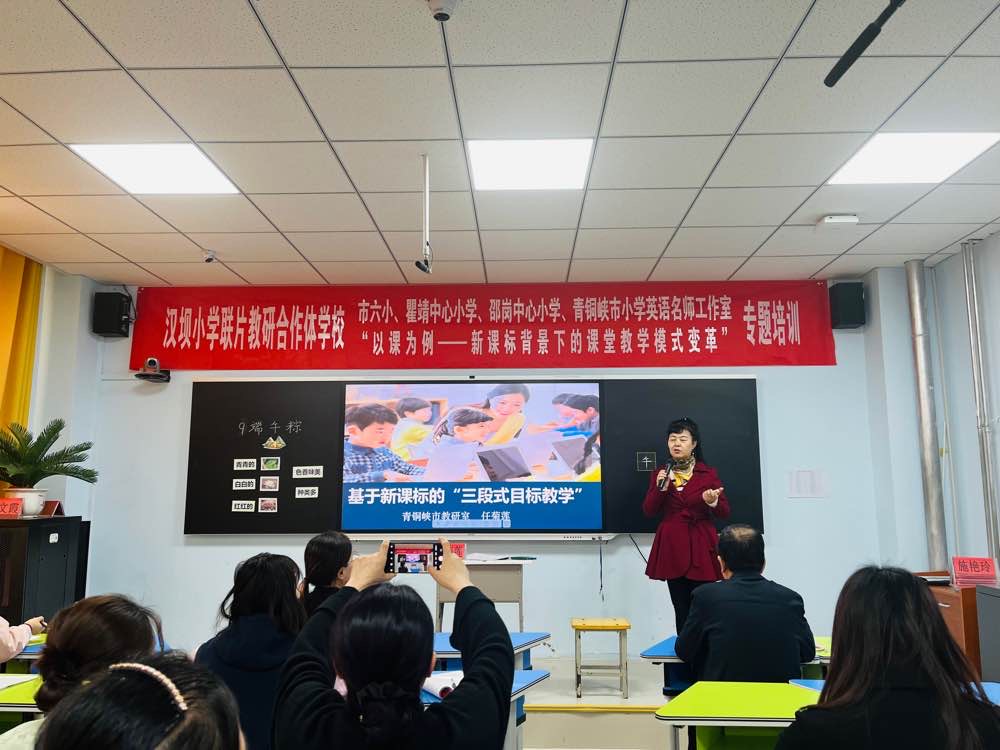 为深入学习贯彻落实党的二十大精神和自治区教育厅、吴忠市教育局《关于实施基础教育质量提升行动的意见》精神,打造高质量的教师队伍,提升教师理论素养,提高教师课堂教学的有效性,切实推动教育教学高质量发展。2023年3月30日,青铜峡市汉坝小学教研合作体学校、市六小、瞿靖中心小学、邵岗中心小学及青铜峡市小学英语名师工作室在青铜峡市汉坝小学开展了"以课为例--新课标背景下的课堂教学模式变革"专题培训活动。