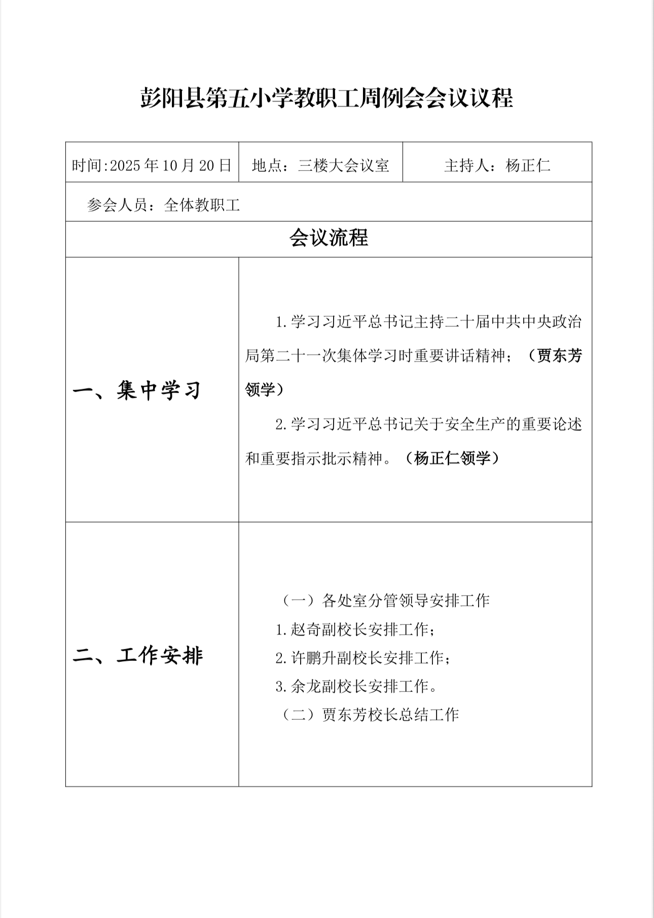 周例会会议议程