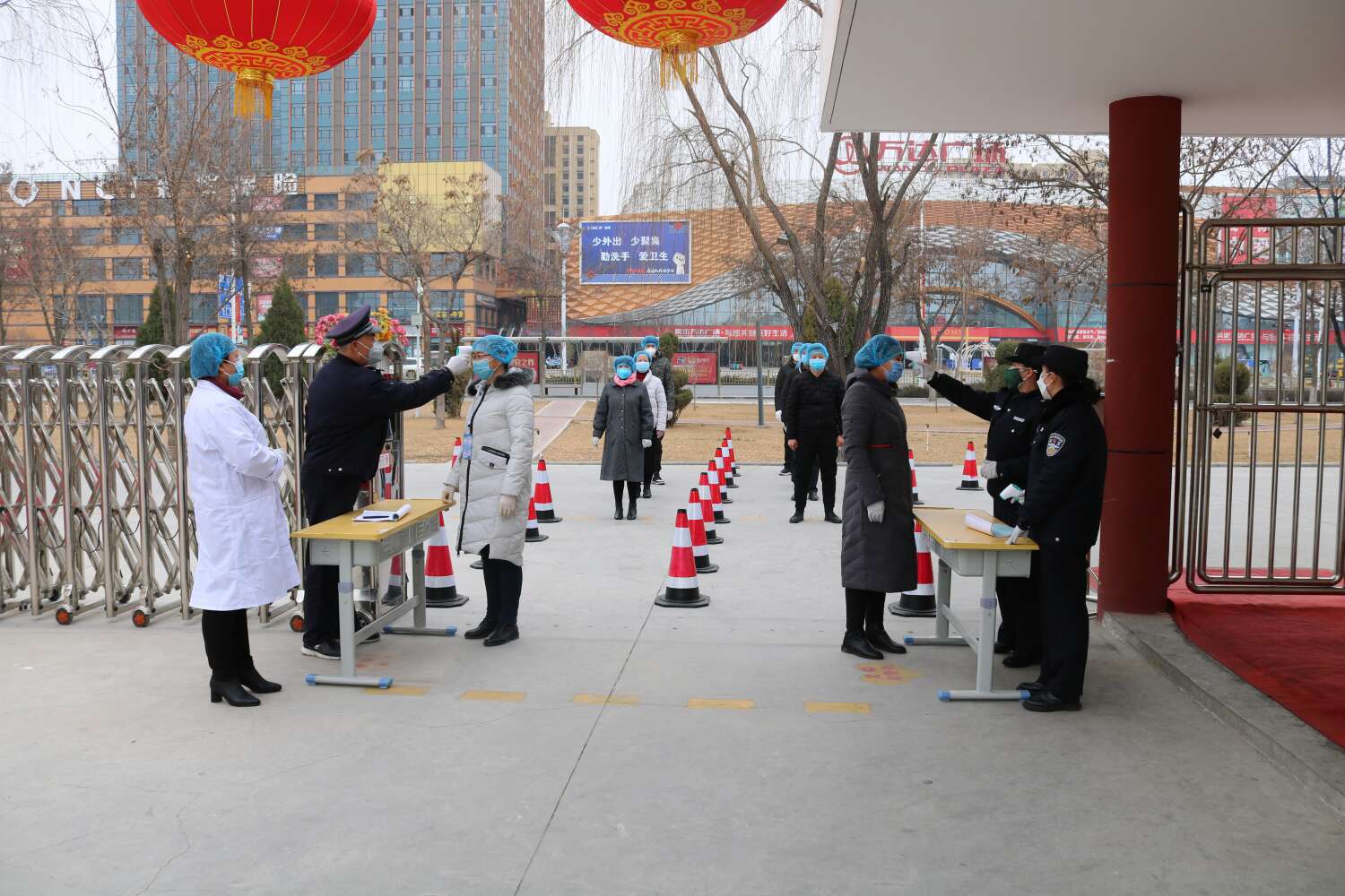 学校中层以上领导、应急处置组教师、保安、公岗近20人齐上阵,人人出力、各司其职。校门外测体温、初查学生身体状况规定顺利科学有效无问题;校内课间活动分区域管控规定科学无问题;学生上卫生间、喝水组织规定有序科学无问题……