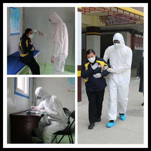 此次推演活动的重头戏是“突发疑似新冠肺炎的应急处置”环节。老师发现疑似新冠肺炎——从班内带离学生,立即通知应急处置组、疫情防控办公室(办公室主任上报校长)及学生家长——应急处置组教师做好防护接学生到留观室留观(校长及办公室主任第一时间赶到留观室外)——保健老师登记甄别后拨打“120”(同时校长上报教育局及卫健委)送指定医院就诊(家长或班主任老师陪同),在学生带离教室之后消毒组人员随即对疑似病人所在班级及所涉及的公开场所进行消毒。之后副组长向广大师生公布病情情况及所采取的防护措施,让广大师生了解情况,安定人心,维护学校稳定。演练期间发现预案存在的问题立即整改,再来一遍,直到推演完美无缺。