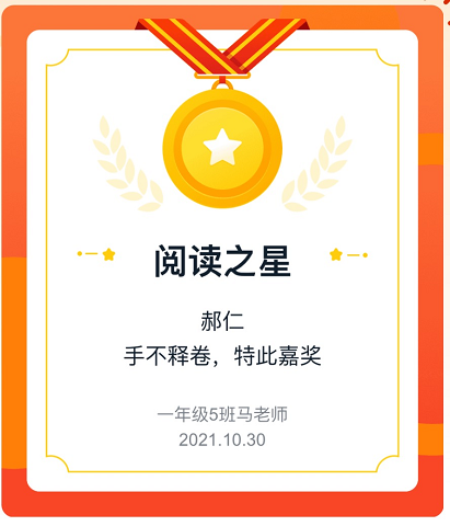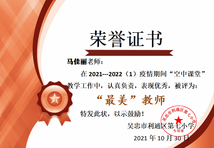 电子奖状群里发。每当一项活动或者一项学习任务完成后,班主任或任课教师及时制作印发电子奖状通过班级群发到学生手中,进行表扬。在线学习期间,虽不能像平时一样走上校园颁奖台,但是在班级群里领到这一份特殊的奖状,孩子们仍然倍加珍惜。他们纷纷表示会一如既往地认真学习,锻炼身体,做好防疫小卫士。