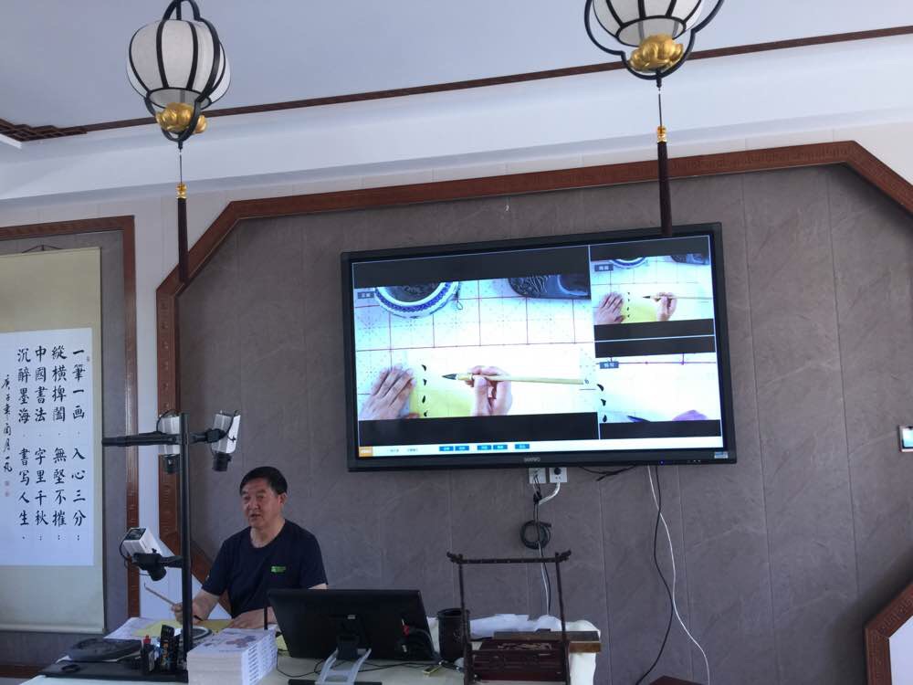 雍老师现场示范,向大家展示了汉字笔画以及书写的基本要领。