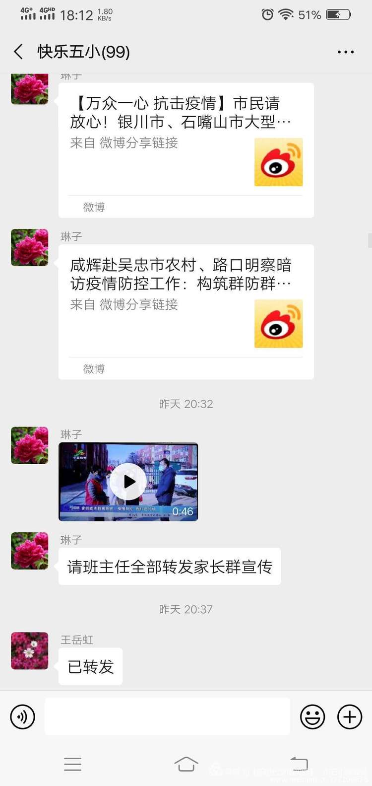 通过微信群发放宣传知识、告家长书、