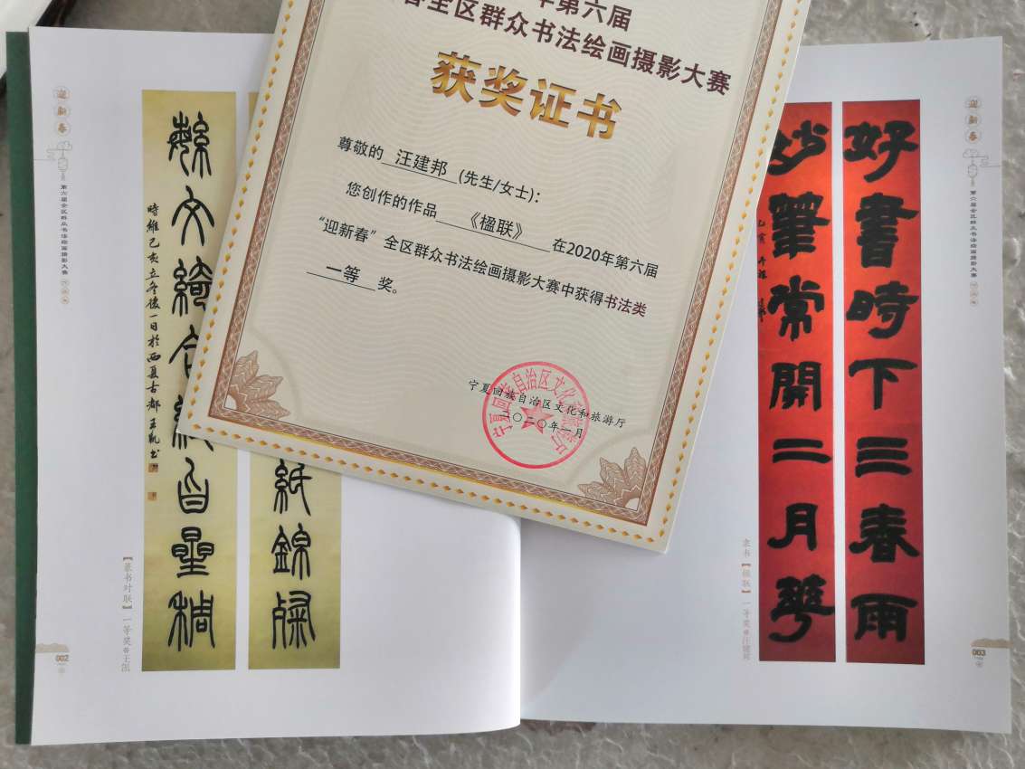 祝贺“全区书法绘画摄影大赛优秀作品巡展”结束,领到证书、作品集和退稿作品,感谢![em]e163[/em]