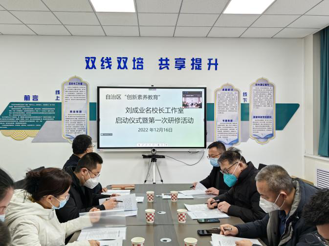 为充分发挥名校长在教师队伍建设中的示范、引领、辐射作用,推动优秀管理层队伍建设,促进管理专业化、科学化发展,2022年12月16日下午,自治区“创新素养教育”刘成业名校长工作室启动仪式暨第一次研修活动在中卫市第九中学举行。